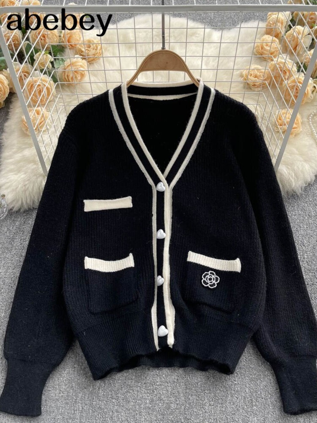 秋の女性のセーターカーディガンスプライス V ネックニットカーディガン女性セーターコート 2022 オータム 秋物 Vネック Abe13803133413