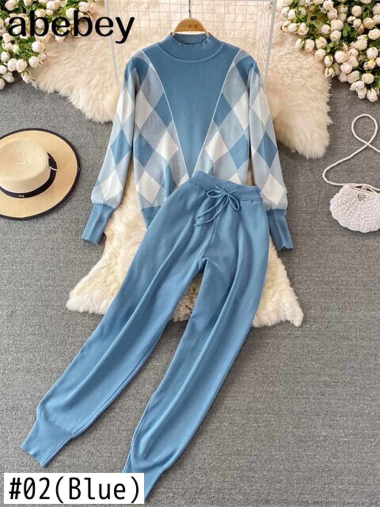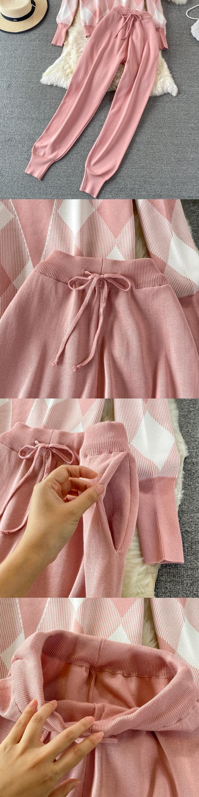 2022 冬 厚手のセーター トラックスーツ O ネック ジャンパー & ゴム ウエスト パンツ スーツ ニット 2 ピース S エラスティック 伸縮 ウィンター 冬物 Oネック Abe27745622764