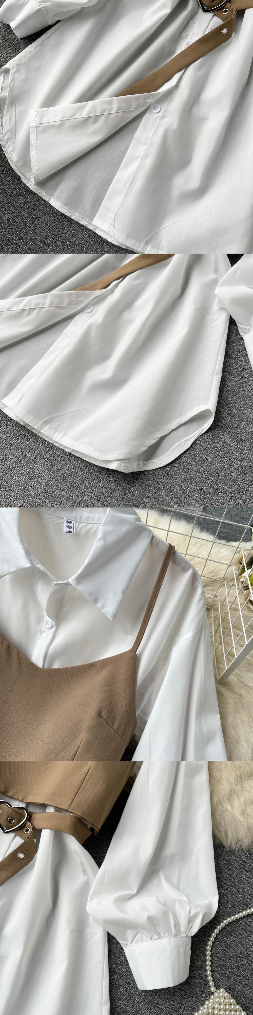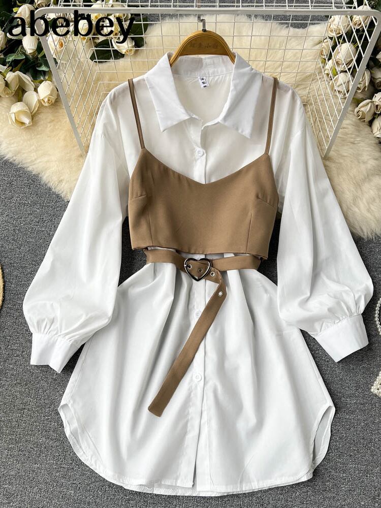 2022 不規則な秋ツーピーススーツシニアシャツショートドレス + ミニキャミソールスーツ 2022 女性スプライシング秋セット オータム 秋物 Abe44314036890