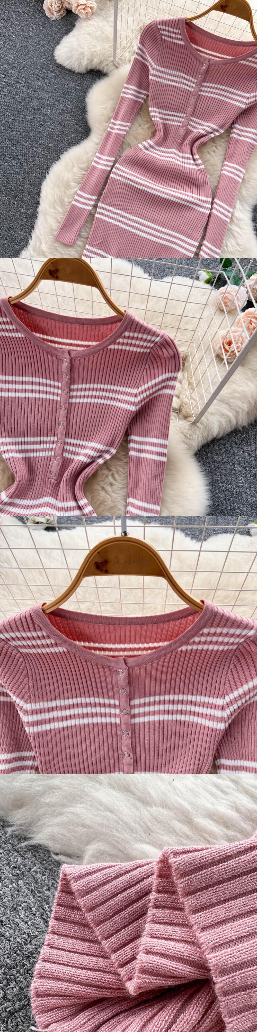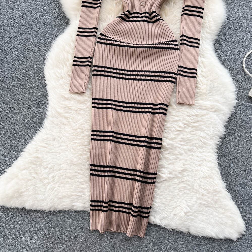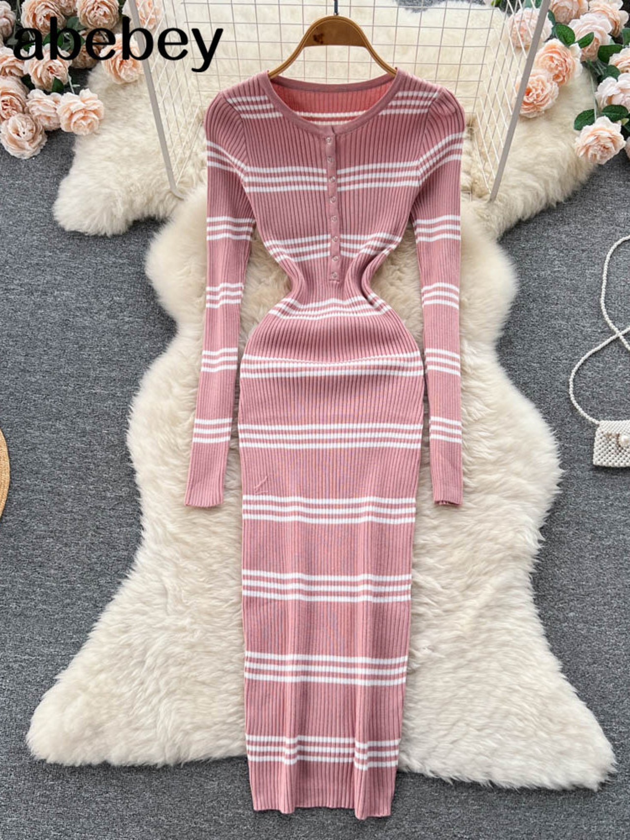 マキシロング女性ニットドレス長袖弾性スリムペンシルドレス 2022 秋のセクシーなボディコンボタンセータードレス エラスティック 伸縮 オータム 秋物 Abe18867725088