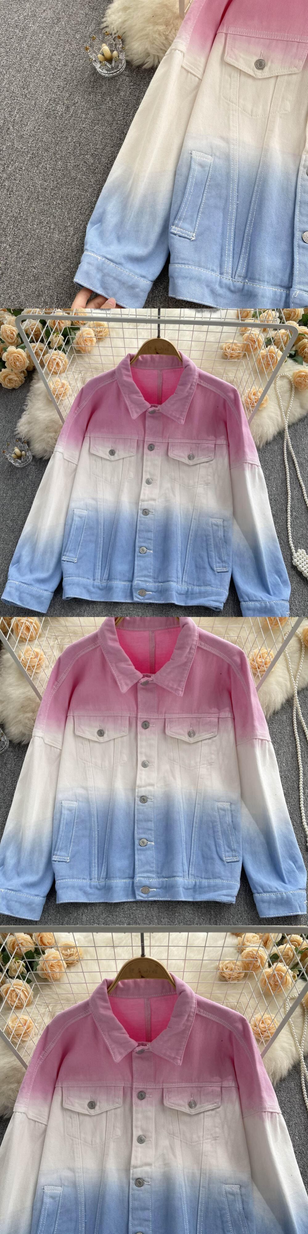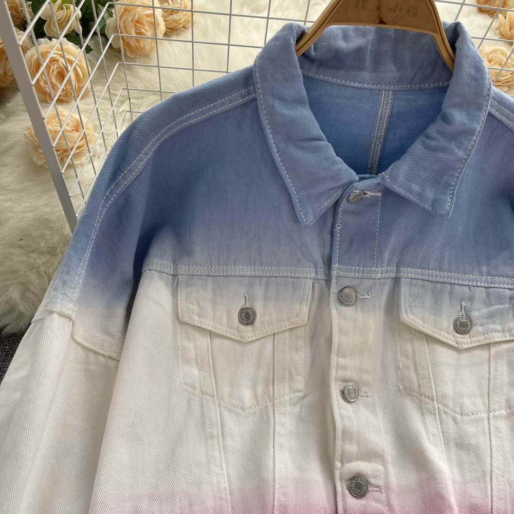 レインボー ルース デニム コート 薄手 長袖 シングルブレスト ストリート ショート アウター コート ロング Abe87376682817