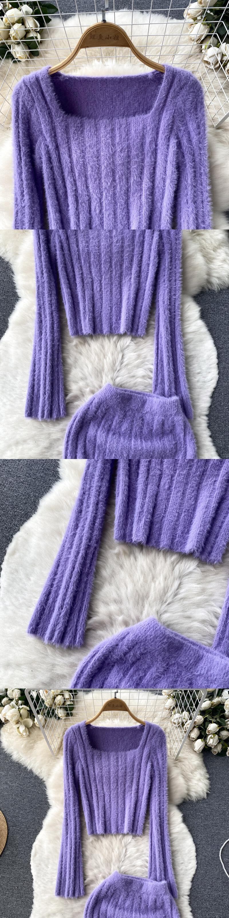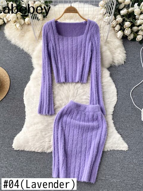 冬の優しいニット Swts 長袖ショートトップ + 弾性ボディコンスカートストリート女性二枚スーツ ロング エラスティック 伸縮 ウィンター 冬物 Abe23792983930