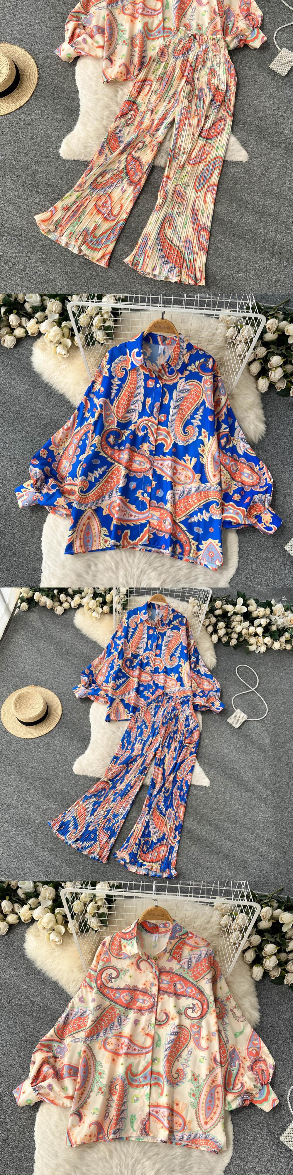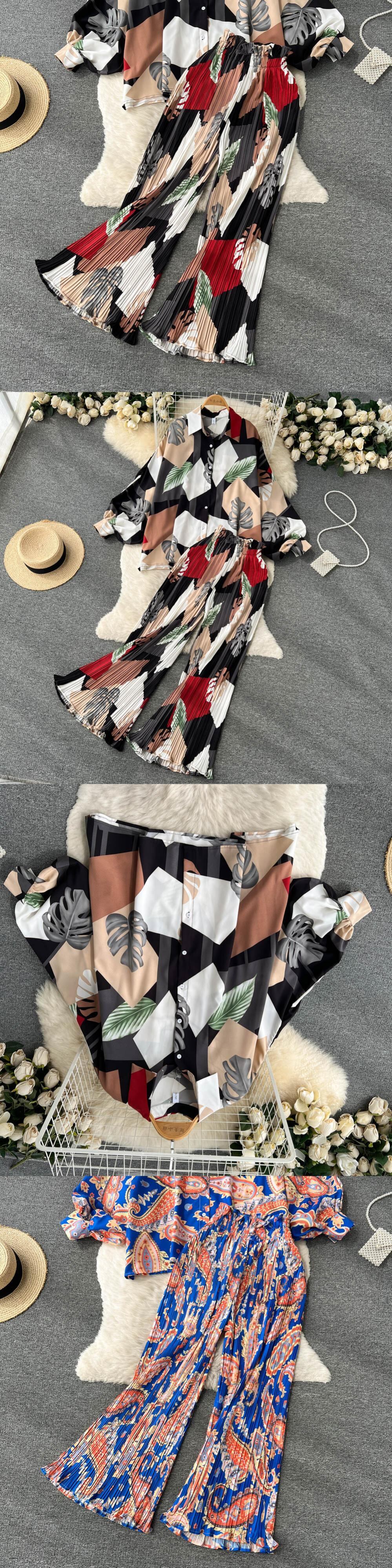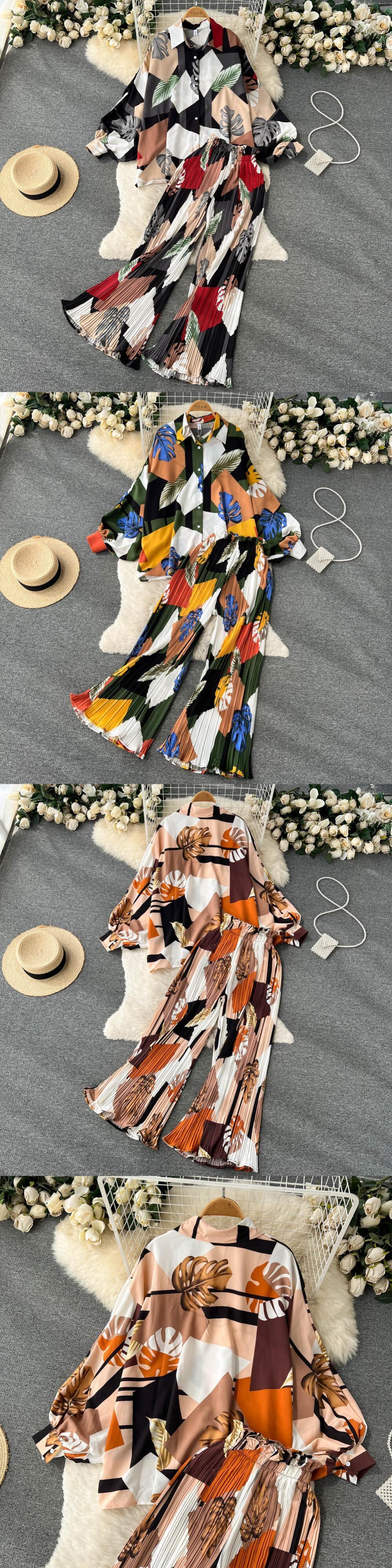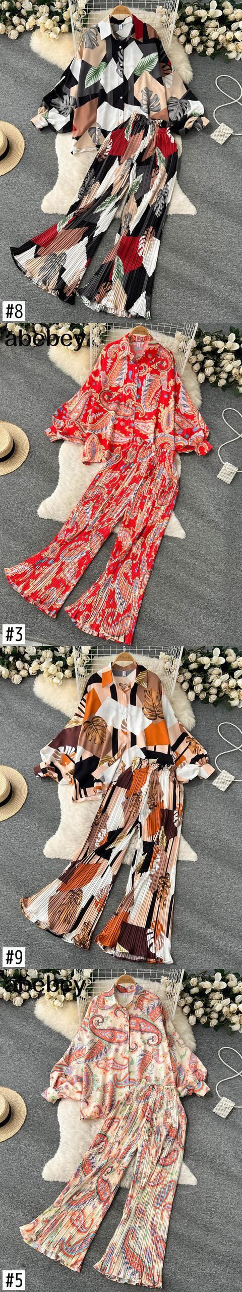 女性のマッチングセット長袖シャツストレートパンツスーツ 2022 ルーズ無地トップス 2 ピース衣装 ロング ソリッドカラー Abe71138307827