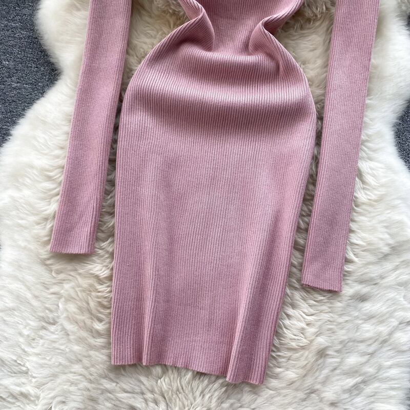 中空アウト女性ニットドレス長袖 O ネック弾性スリムペンシルミニドレスビーズセクシーなボディコンセータードレス ロング エラスティック 伸縮 Oネック Abe84598070324