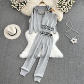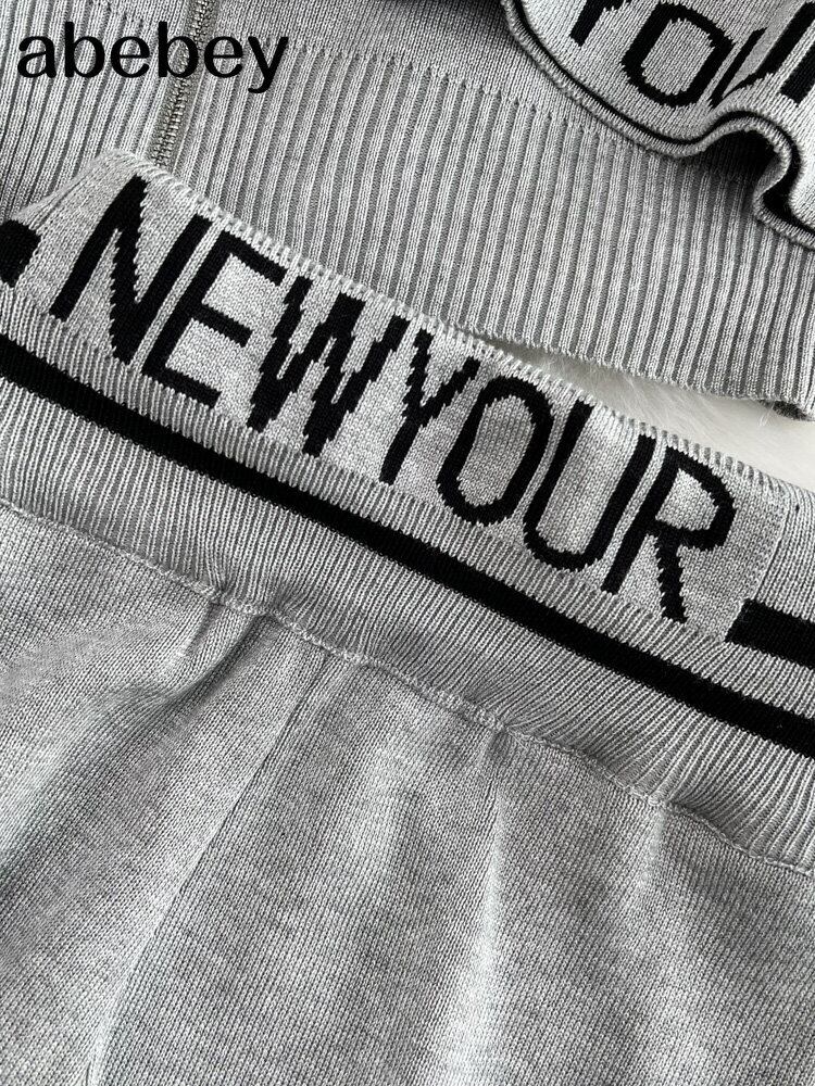 女性トラックスーツシックな 3 点セットニット文字ラウンジスーツカーディガンセーター + ジョガーパンツ + ノースリーブタンクトップ Abe81243932925