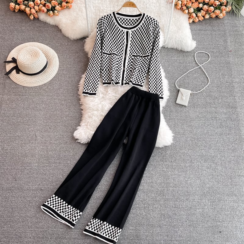 秋の女性特大カーディガンセータートラックスーツピンクニットジャンパースーツ + ハーレムパンツ 2/二枚冬セット オータム 秋物 ウィンター 冬物 Abe11134431716