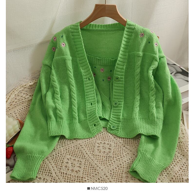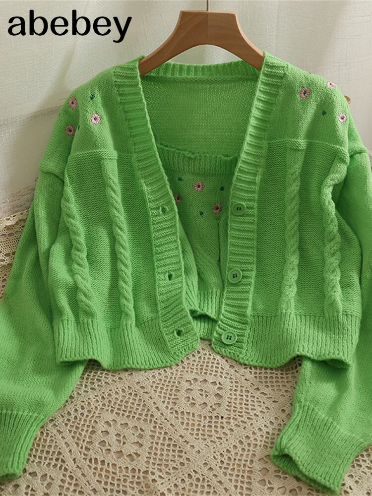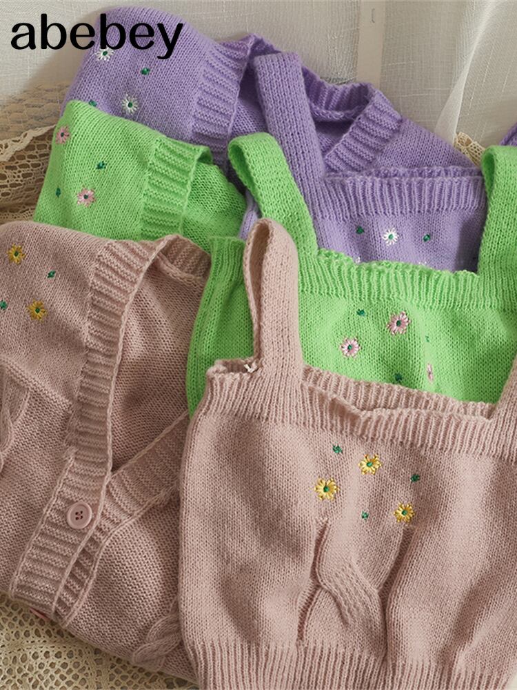 2022 春のスタイル刺繍フラワーカーディガンタンクトップ V ネックシングルブレストボタンニットセータージャンパー スプリング 春物 Vネック フラワーデザイン Abe71854671696
