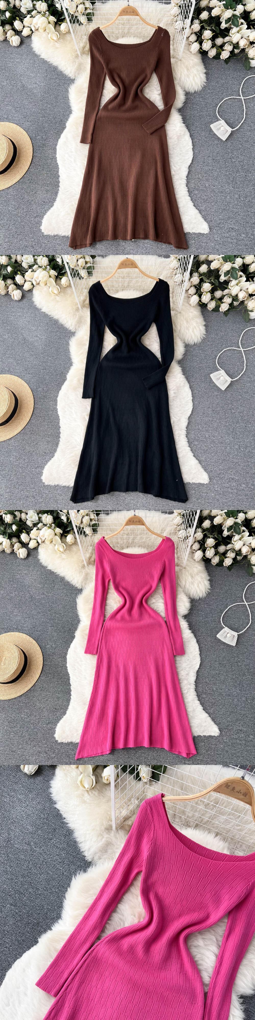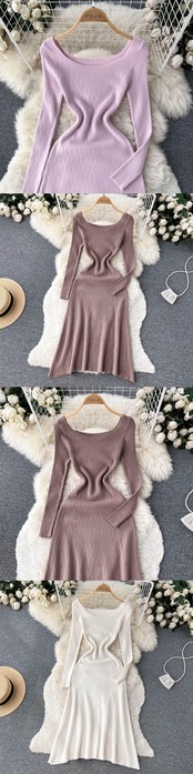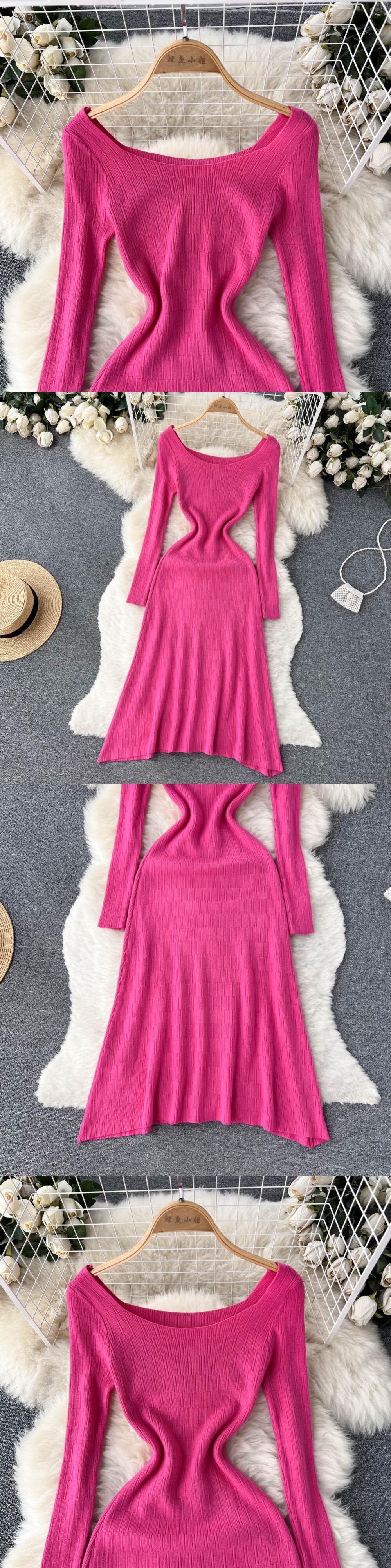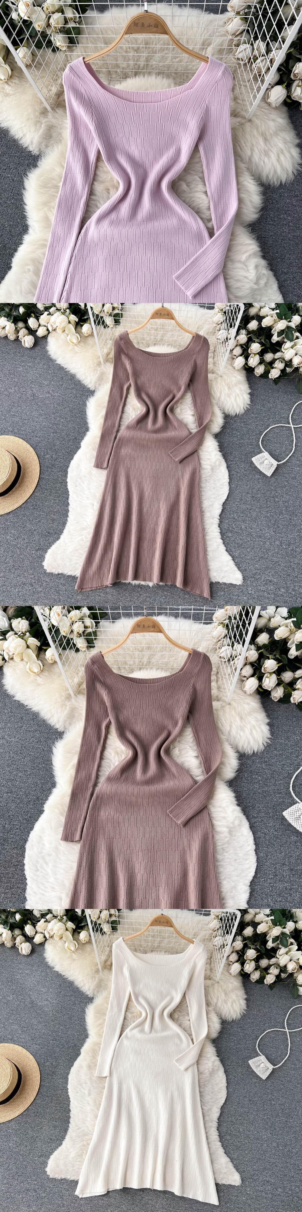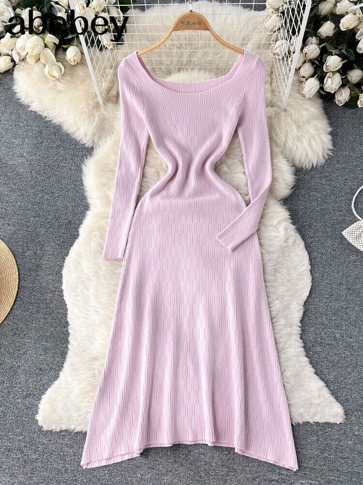 オフショルダーニットロングドレス女性秋長袖弾性ウエストスリムマーメイドドレスセクシーなセータードレス エラスティック 伸縮 オータム 秋物 Abe93959171227