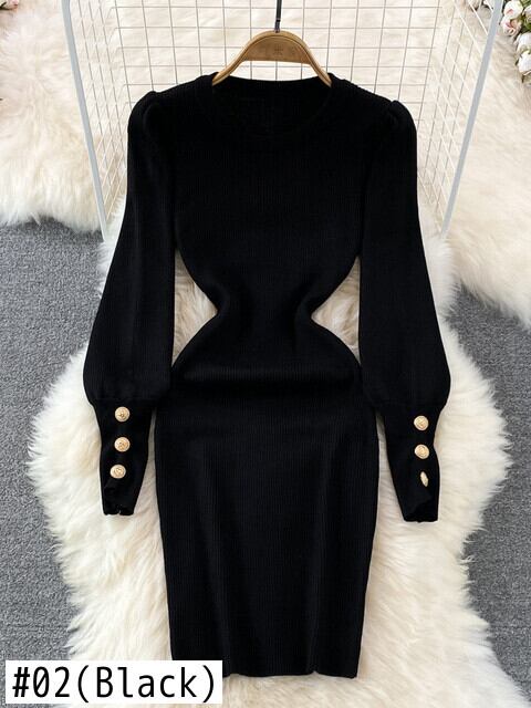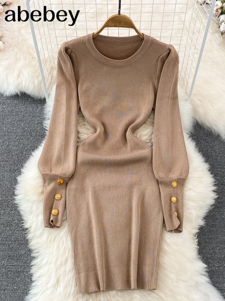 ボトムス セクシー ニット ドレス 長袖 スリム Oネック パーティー ボディコン セーター ミディドレス ロング Abe35873943147