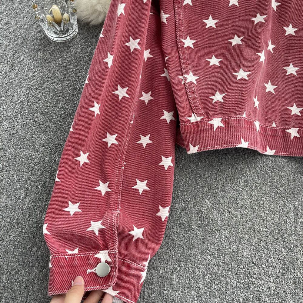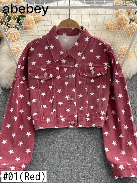 レトロ ペンタアーム ショート デニム コート ゆったり シングル ブレスト 人気 ストリート 薄手 クロップド アウター ジャケット Abe96549402710