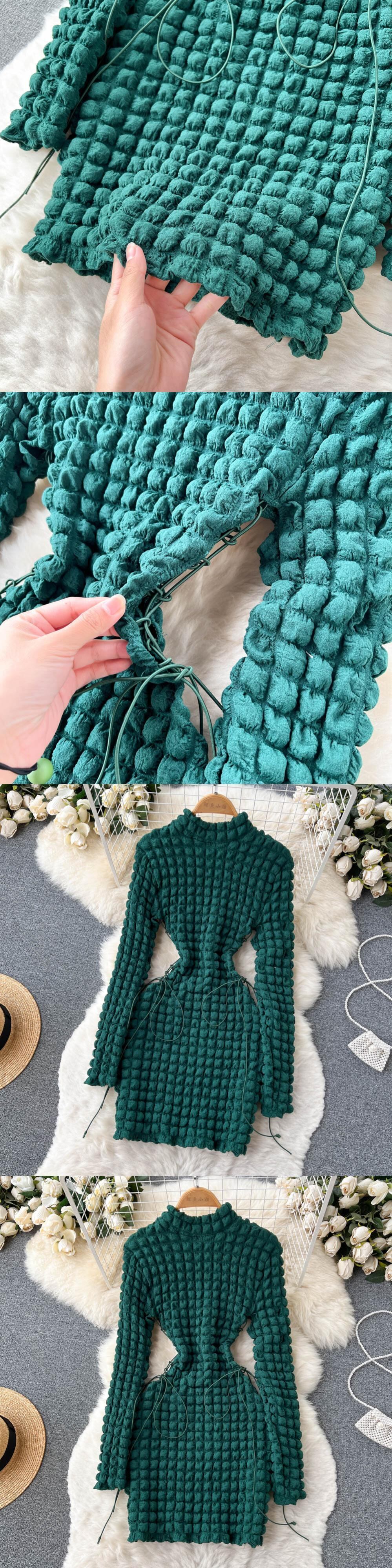 見事な積み重ねられたミニドレスの女性のセクシーなモックネック長袖巾着レースアップボディコンパーティークラブシックなスカート ロング Abe76011252537