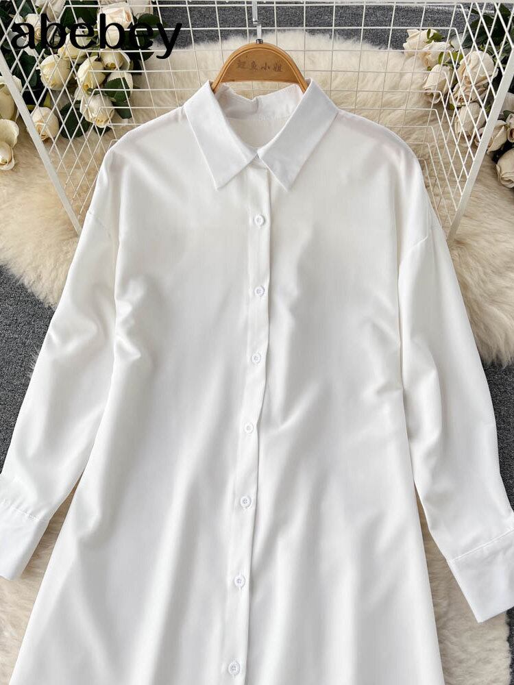 2022 ラグジュアリー ホワイト シフォン シャツ ロング ドレス若いフル スリーブ女性ストレート ドレス Abe58805651705