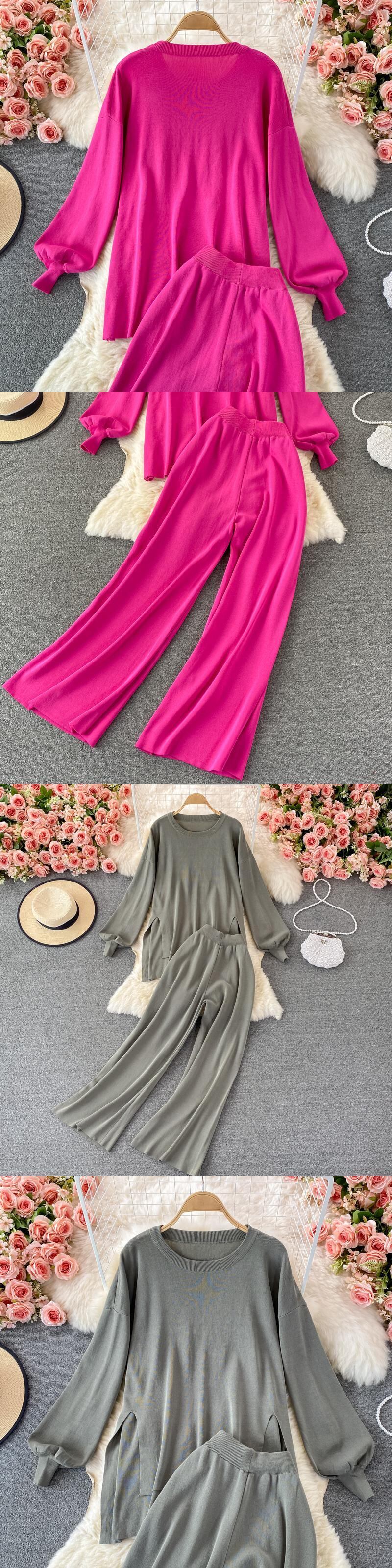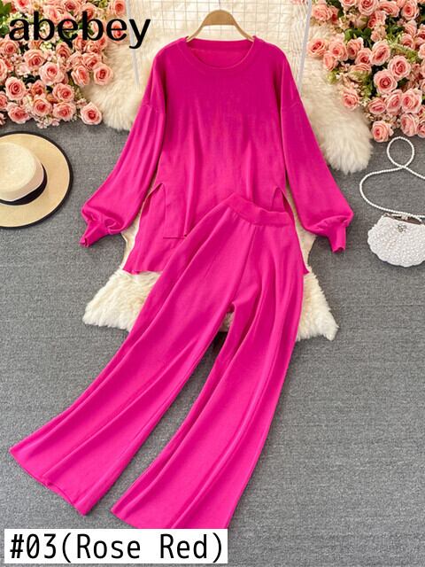 冬の女性のトラックスーツセーター + ワイド LegsPants スーツ特大ツーピースセットスポーツスウェットプルオーバー衣装 y2k シャツ ウィンター 冬物 ワイドレッグ ワイドパンツ Abe31790612192