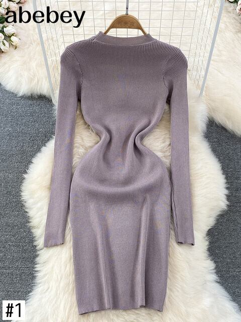 中空アウト女性ニットドレス長袖 o ネック弾性スリムペンシルドレス 2022 秋のセクシーなボディコンセータードレス ロング エラスティック 伸縮 オータム 秋物 Oネック Abe41794837144