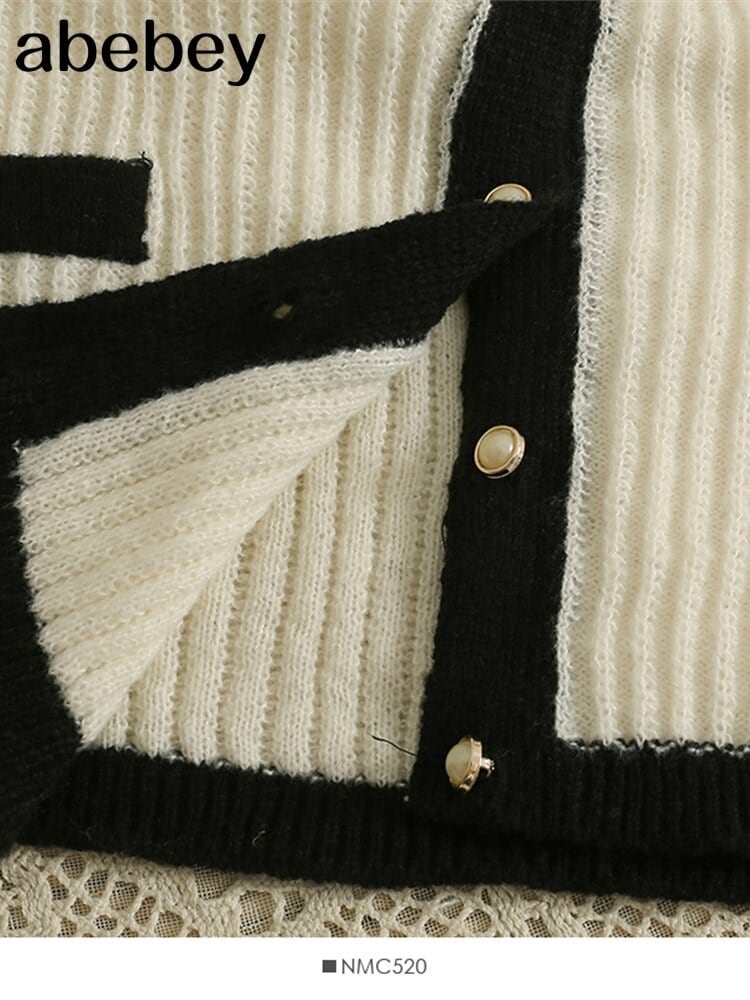 カーディガン女性コントラストカラーセーターコート 2022 秋冬長袖 O ネックニットウェアジャケット ロング オータム 秋物 ウィンター 冬物 Oネック Abe25955891746