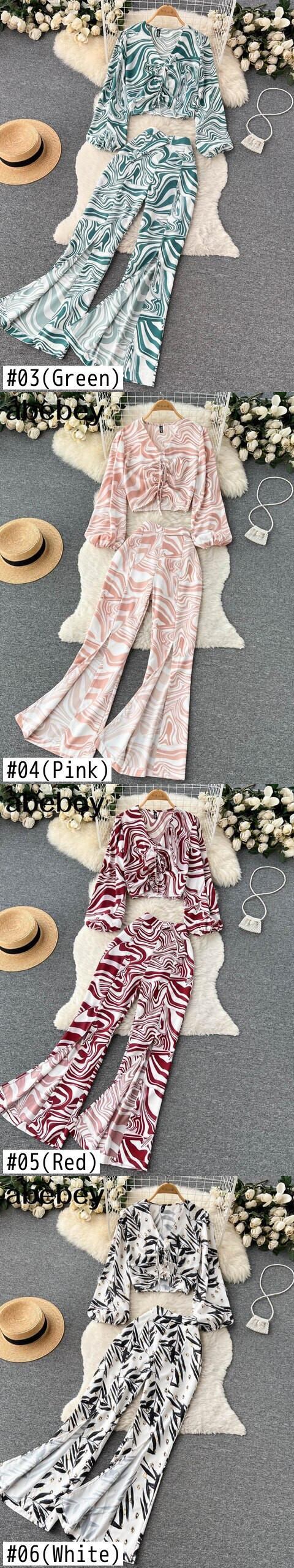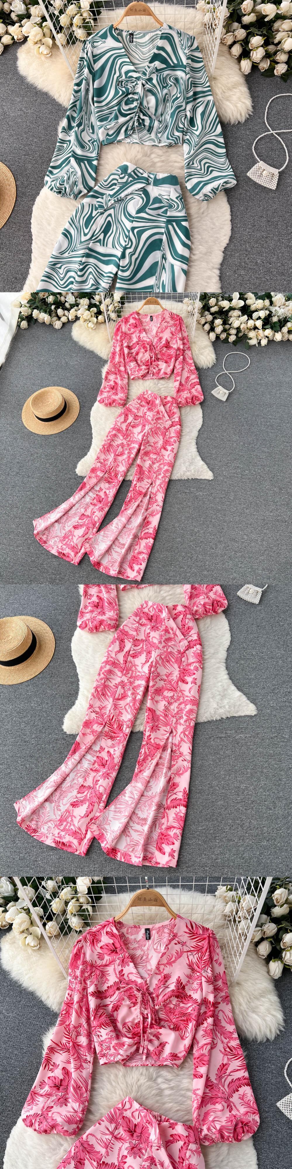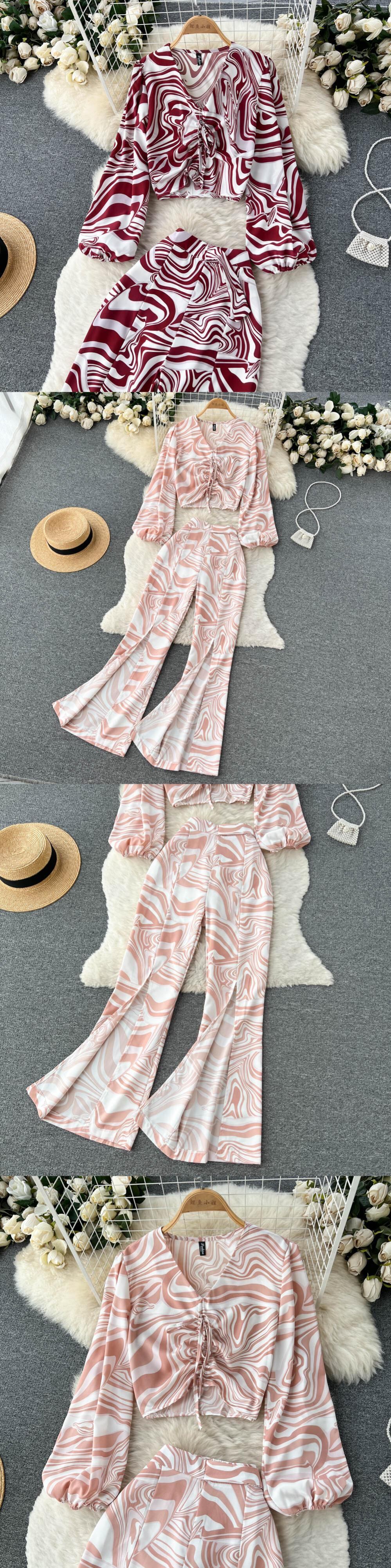 女性の秋のツーピーススーツ長袖ショートトップ + ワイドレッグロングパンツストリートスーツツーピースセット オータム 秋物 ワイドパンツ Abe45471295716