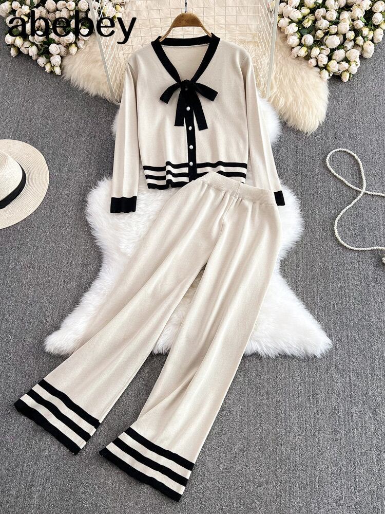 2 ピースセーターセット女性トラックスーツ V ネックセーター + ゆったりズボンシックなプルオーバーセーター + ニットキャロットパンツセット Vネック Abe3869232561