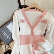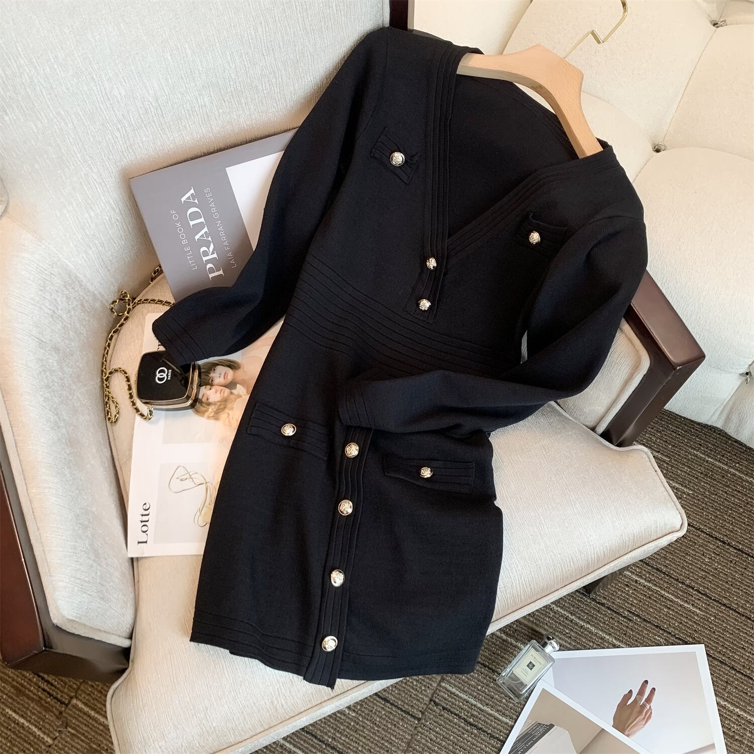 セクシーなニットボディコンドレスシックな長袖Vネックボタンスリムミニドレスレディースドレス ロング Rhc29405579451