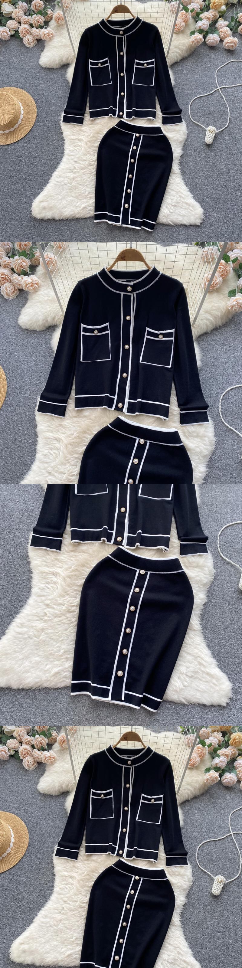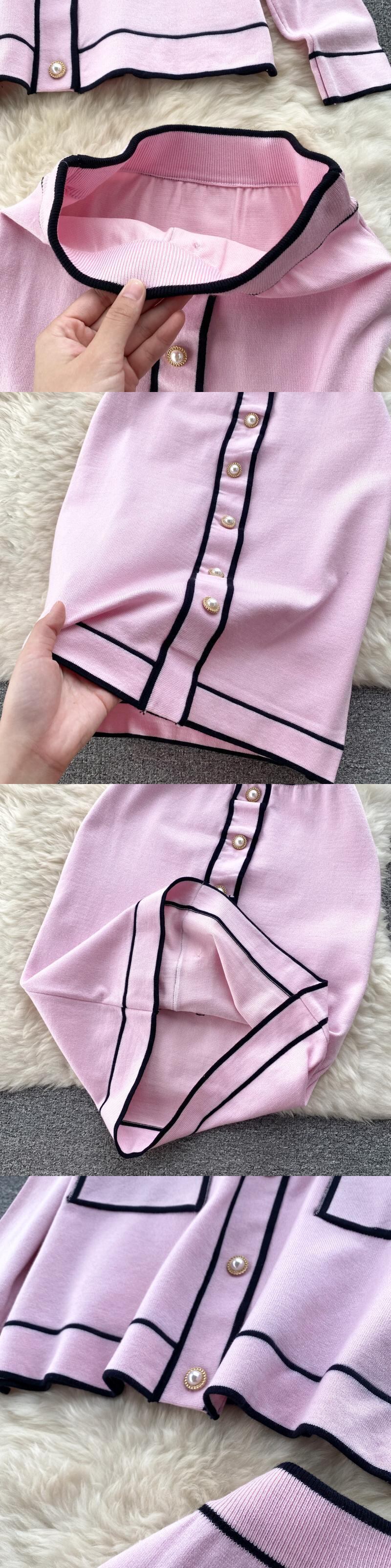 ピンクニットカーディガンとスカートツーピースセット女性スリムフィットセーター女性秋のセーター衣装女性 オータム 秋物 Abe21844587887