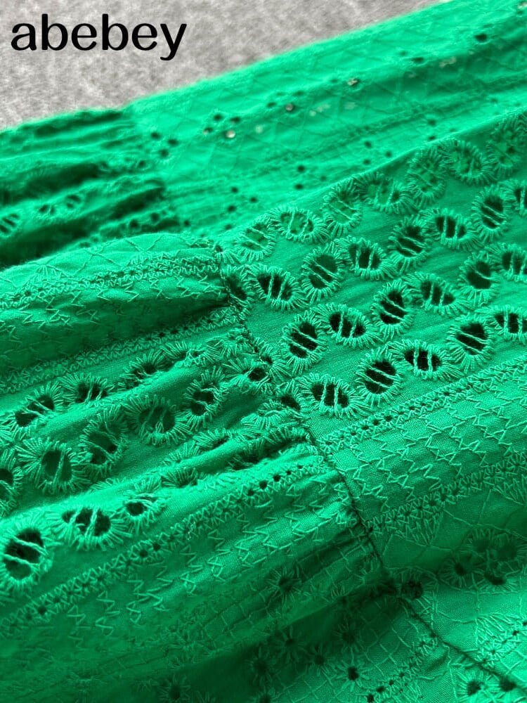 グリーンディープ V ネック 2022 夏レース刺繍ドレス女性半袖ドレスパーティービーチマキシロングドレス ショート ハーフスリーブ サマー 夏物 Vネック Abe47147952593