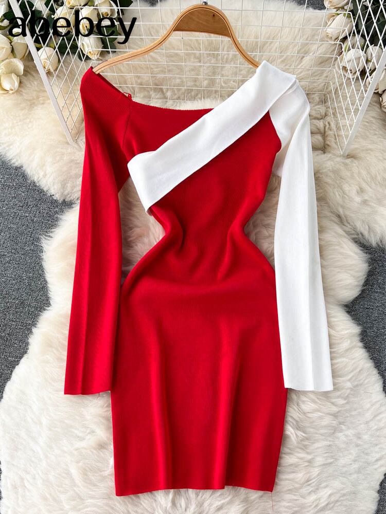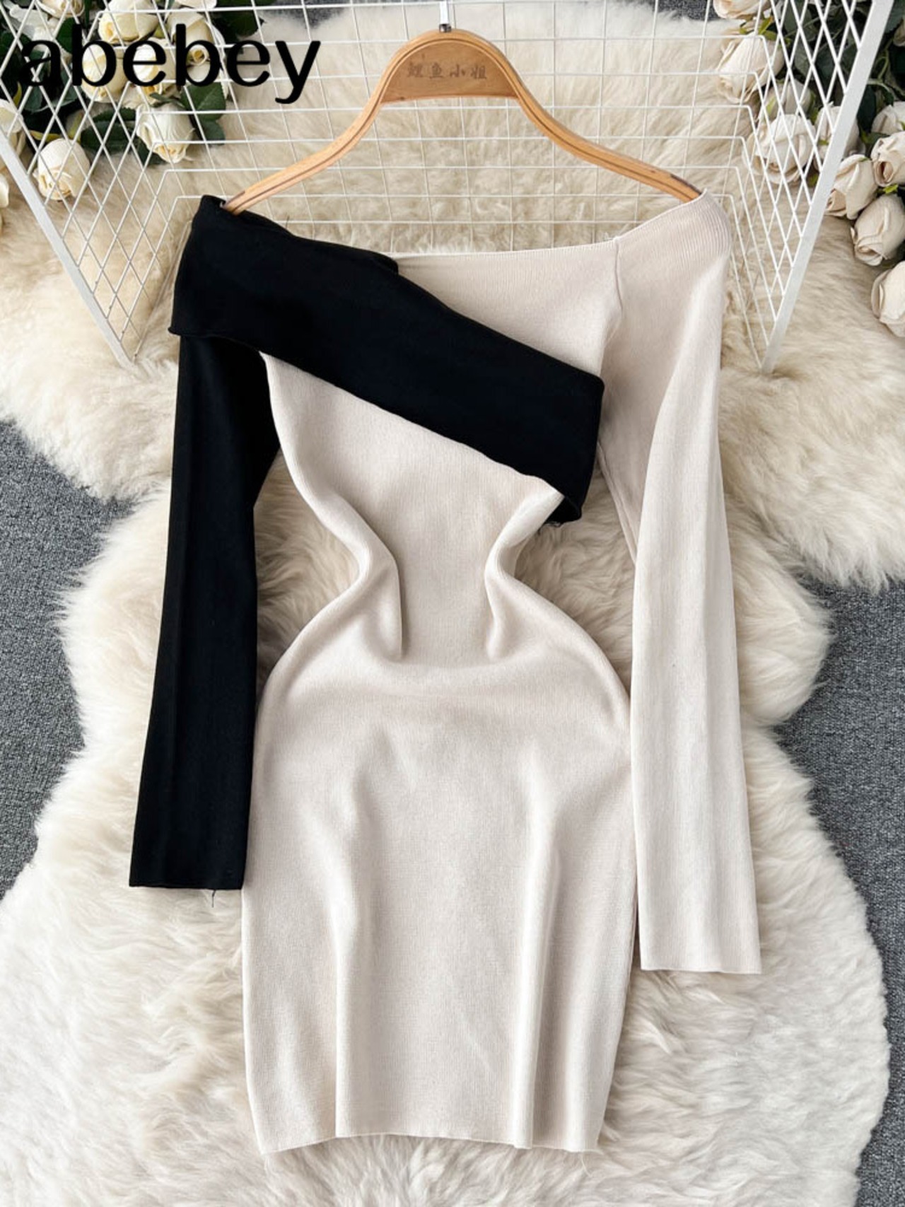 冬のボディコン ニット ドレス長袖スラッシュ ネック シース セーター ドレス 2022 パーティー セクシーな暖かいドレス ロング ウィンター 冬物 Abe69681474417