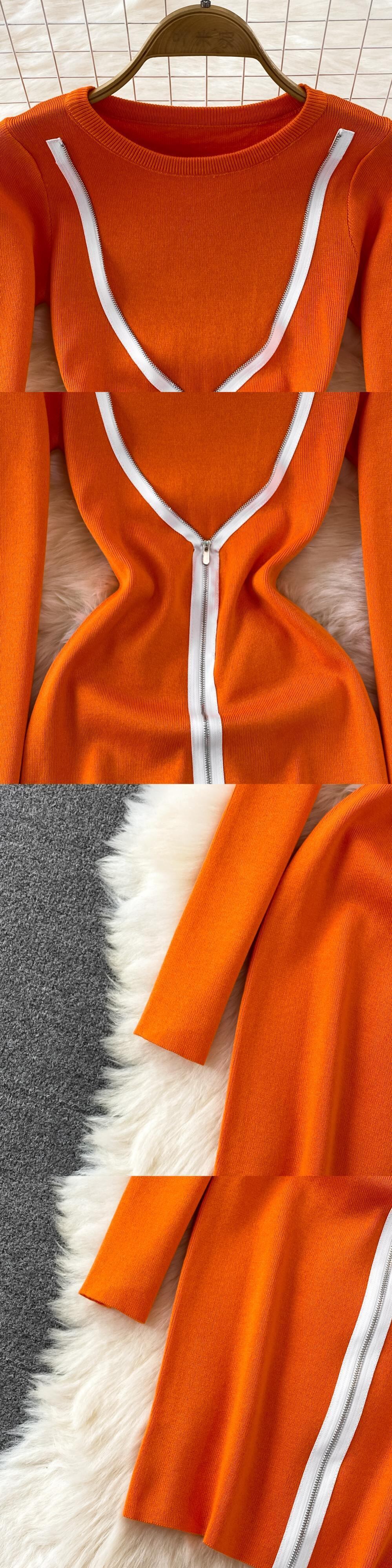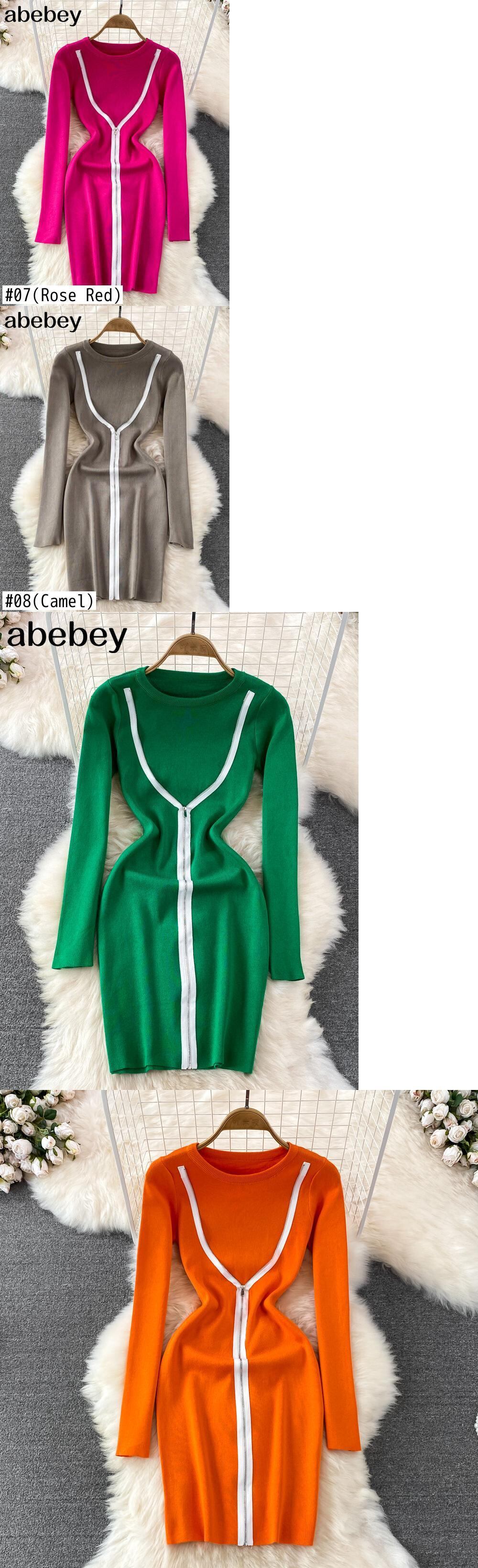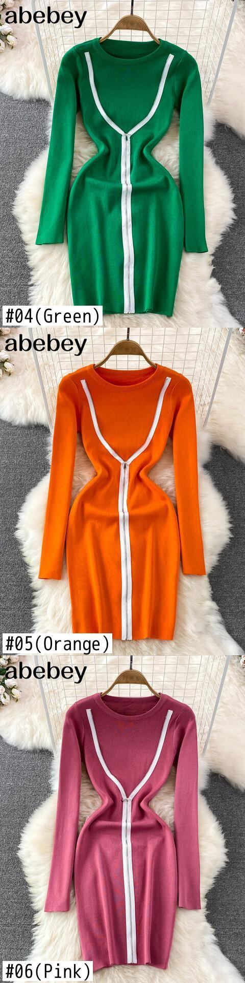 O ネック秋の女性ニットドレス長袖弾性ウエスト暖かいドレス冬のボディコンミニセータードレス ロング エラスティック 伸縮 オータム 秋物 ウィンター 冬物 Abe8432712786