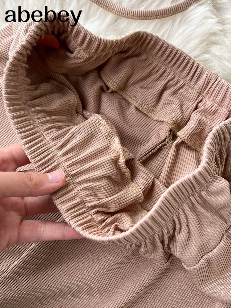 女性の夏 2022 ニットセット弾性スリムスポーツレトロ固体気質セクシーなスクエアネックツーピースセット エラスティック 伸縮 サマー 夏物 ソリッドカラー スクウェア Abe42282959042