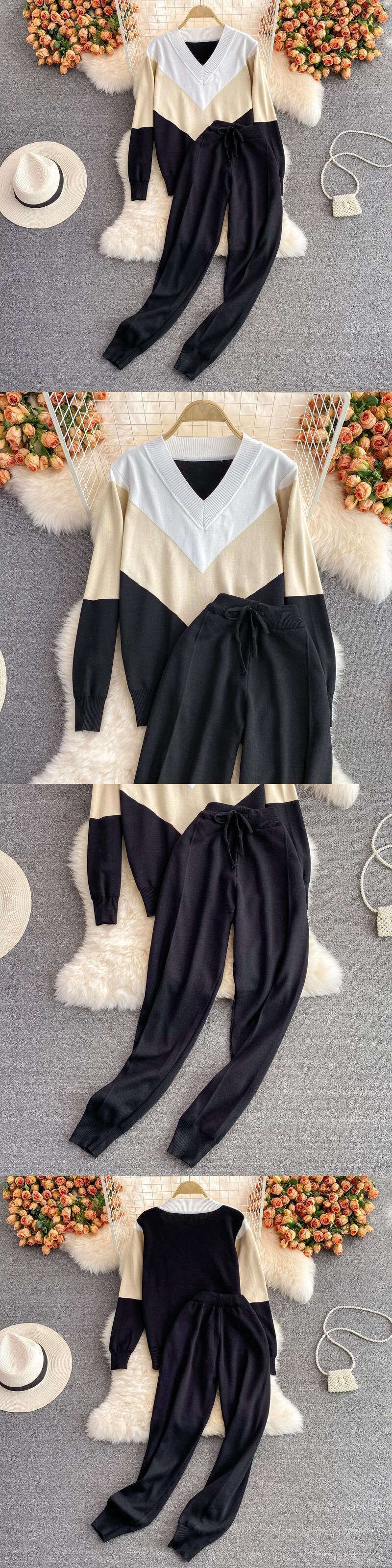 女性セーター 2 ピース ニット セット ジャカード トラック スーツ シックなプルオーバー クルーネック長袖トップ ワイド脚パンツ 2022 ロング ワイドレッグ ワイドパンツ Abe92966722890