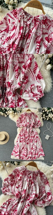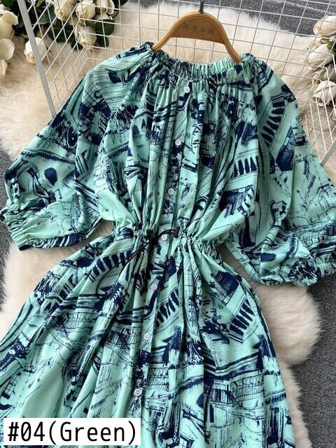 春秋のセクシーな o ネックドレス女性スウィートパフスリーブビーチドレス花柄プリントパーティードレスロングローブ Vestidos 大人ガーリー キュート カジュアル スプリング 春物 オータム 秋物 Oネック Abe44875687832