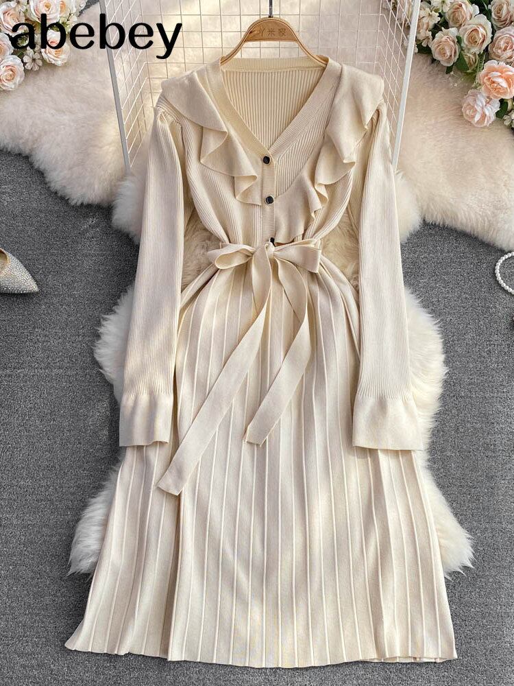 ピンクの女性ニットペンシルドレス長袖 V ネック弾性スリムドレス秋冬セクシーな A ライン暖かいセータードレス ロング エラスティック 伸縮 オータム 秋物 ウィンター 冬物 Vネック Aライン Abe65993981610