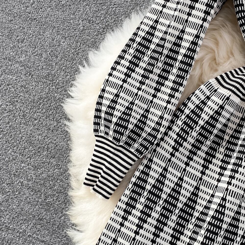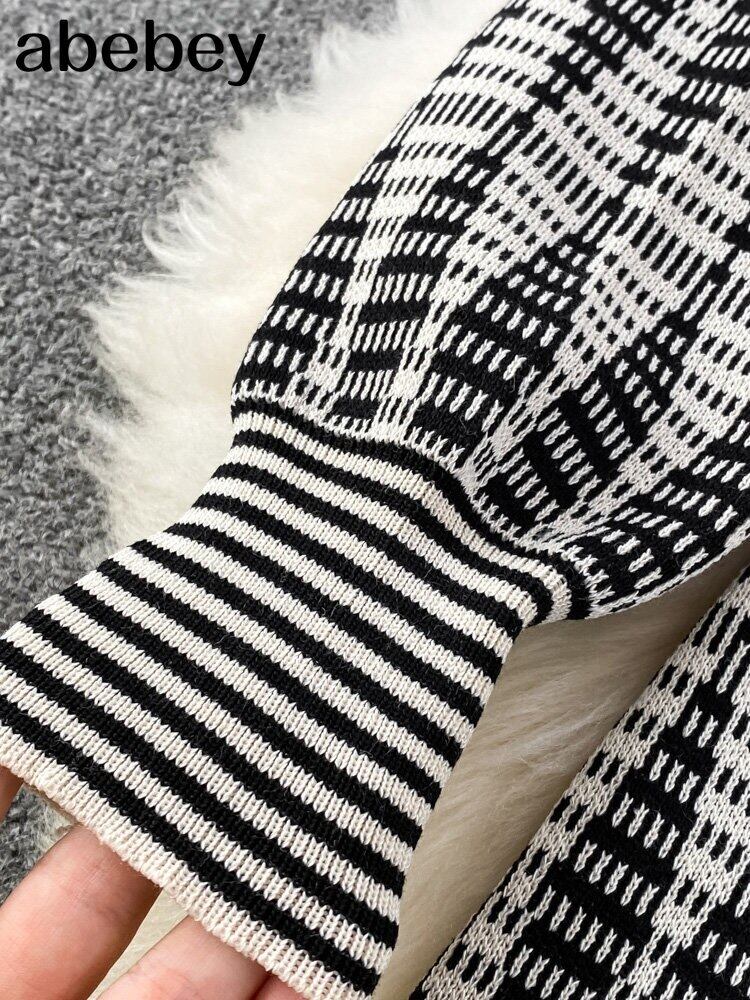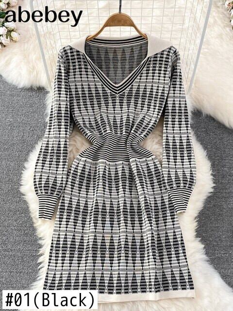 女性のレトロな格子縞のニットドレス長袖 V ネック弾性スリムシースドレス秋冬セクシーなボディコンセータードレス ロング エラスティック 伸縮 オータム 秋物 ウィンター 冬物 Vネック Abe70377049183