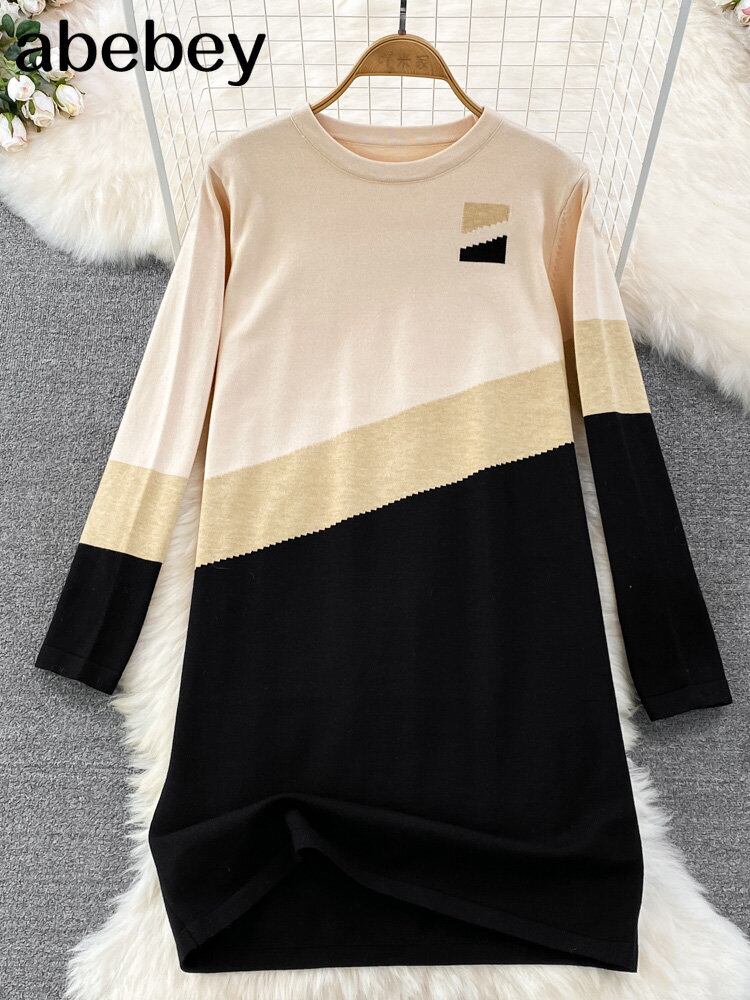 女性ニット長袖ドレス 2022 秋冬黒スリムミニドレスパーティーセーターボディコンドレス服 ロング ブラック オータム 秋物 ウィンター 冬物 Abe40571394414
