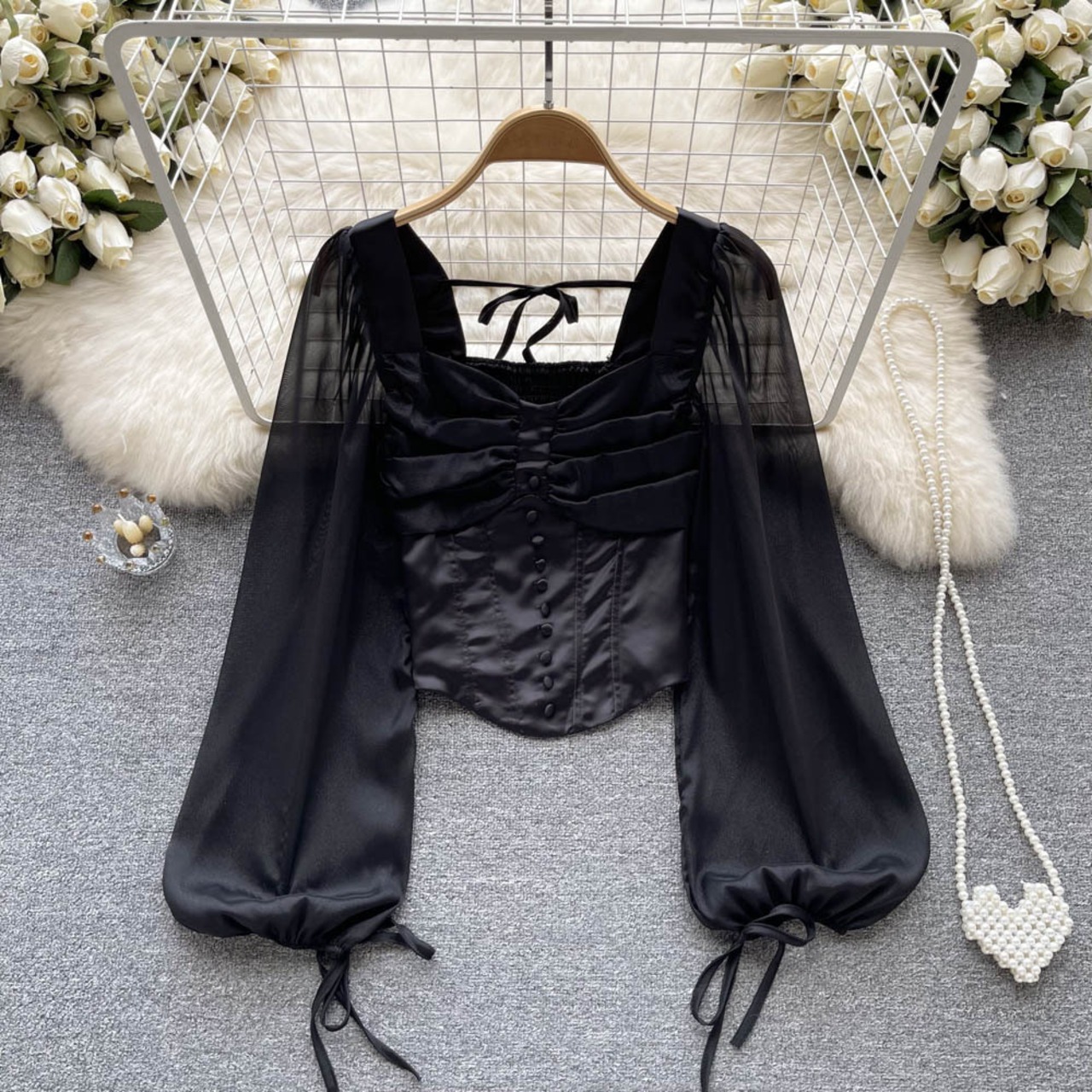 夏オフショルダートップス女性長袖ソリッドジッパー弾性ウエストトップス春フリルショートセクシーなシャツ ロング エラスティック 伸縮 スプリング 春物 サマー 夏物 ソリッドカラー Abe11703391501