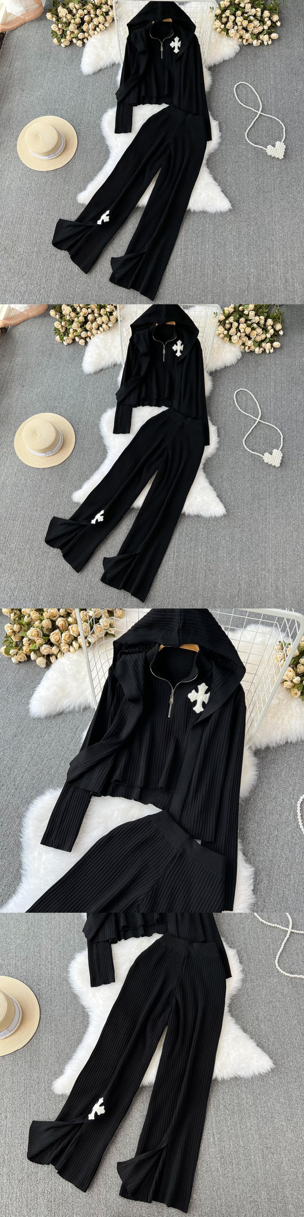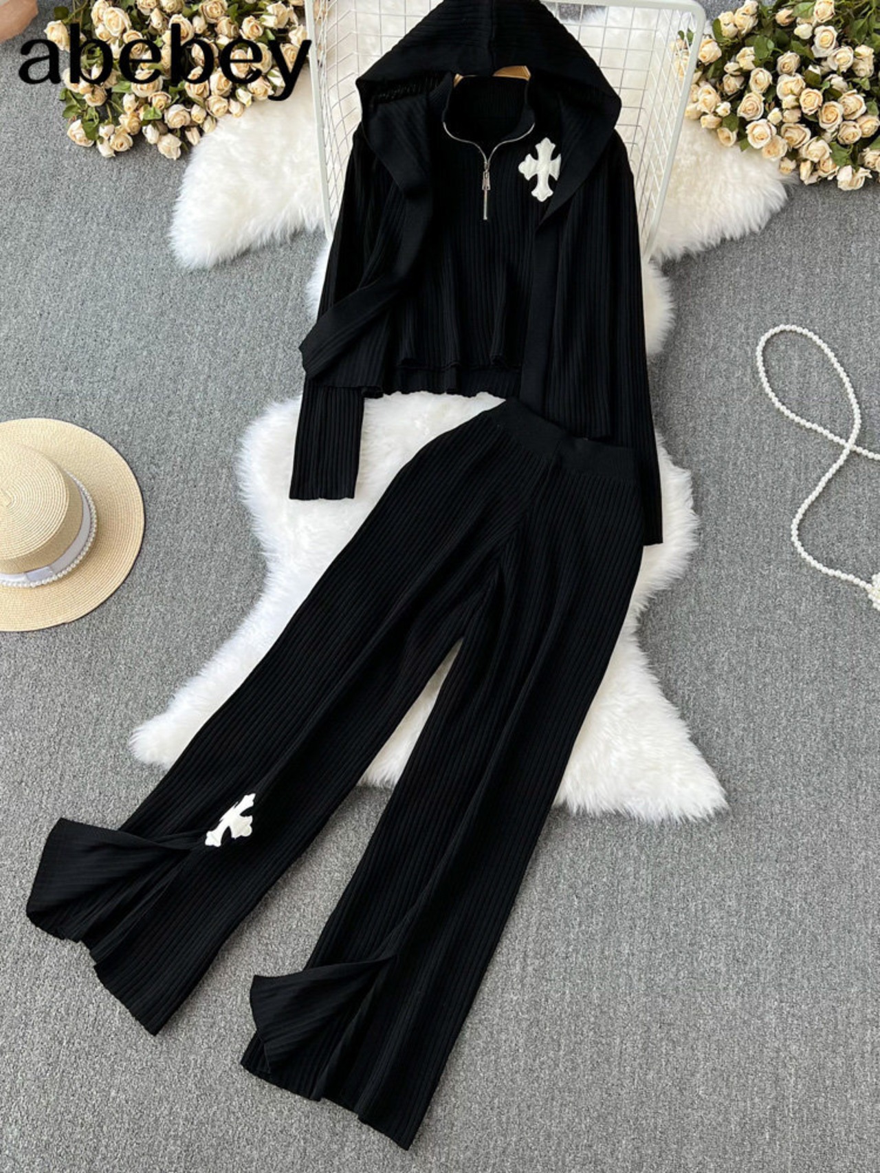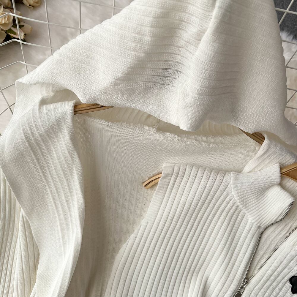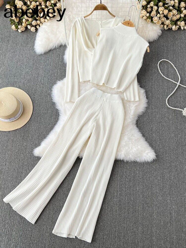 女性トラックスーツシックな 3 点セット ニット ホワイト ラウンジ スーツ カーディガン セーター + ジョガー パンツ + ノースリーブ タンクトップ Abe81176001685