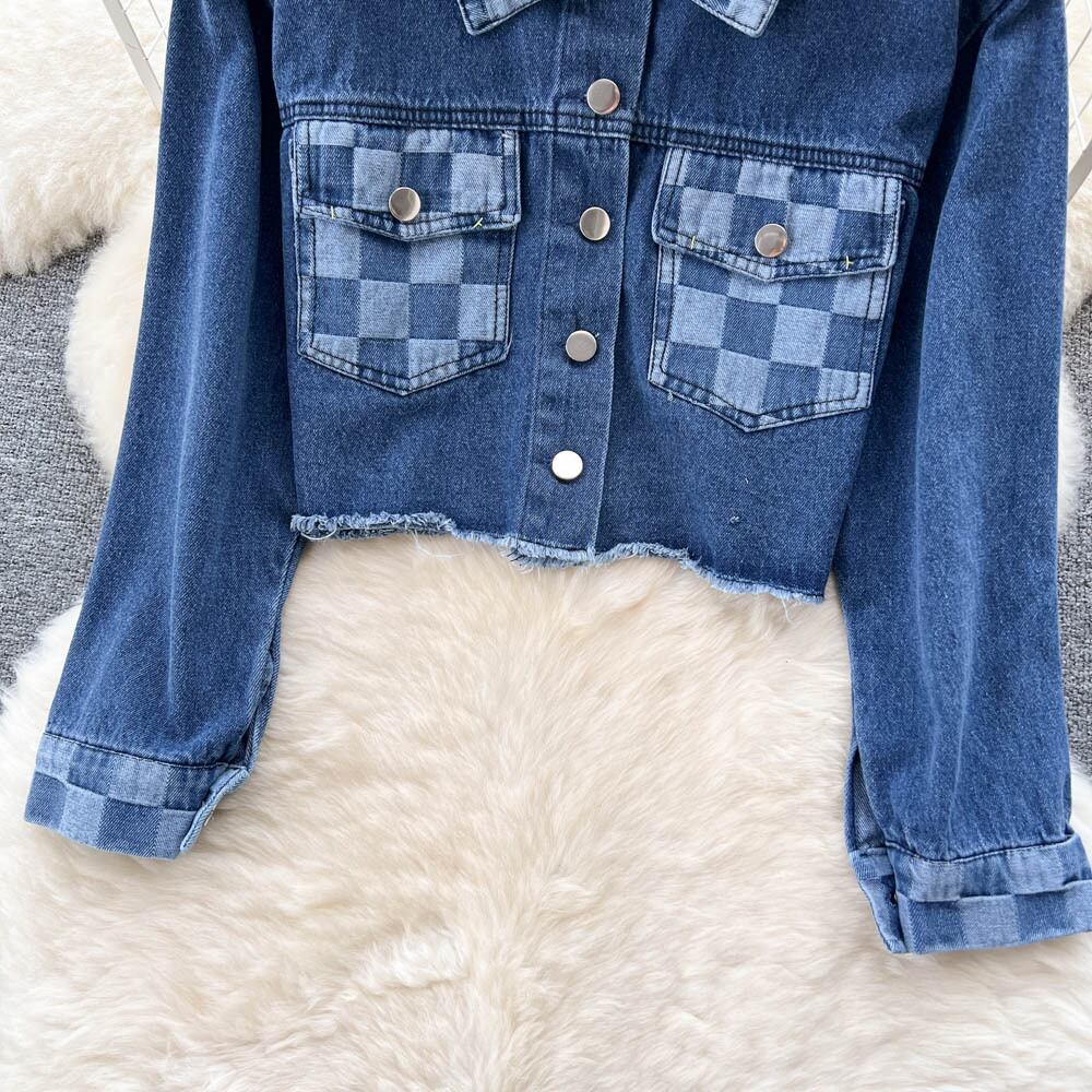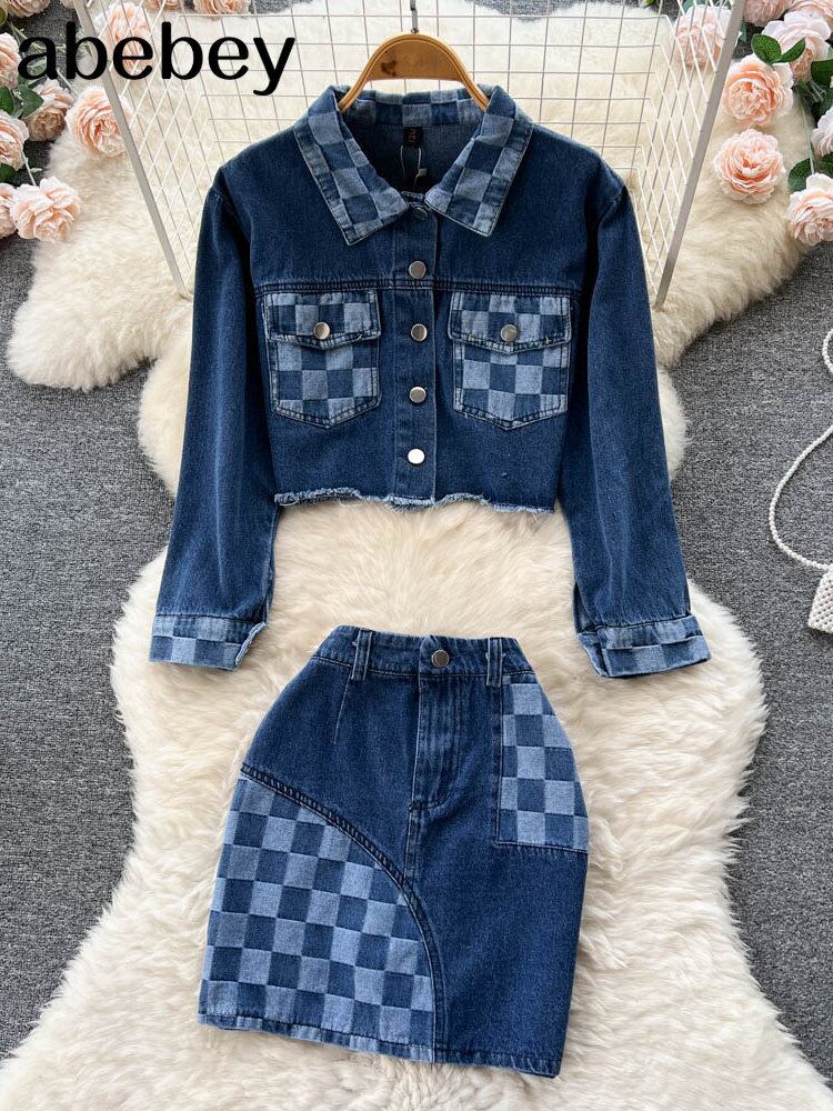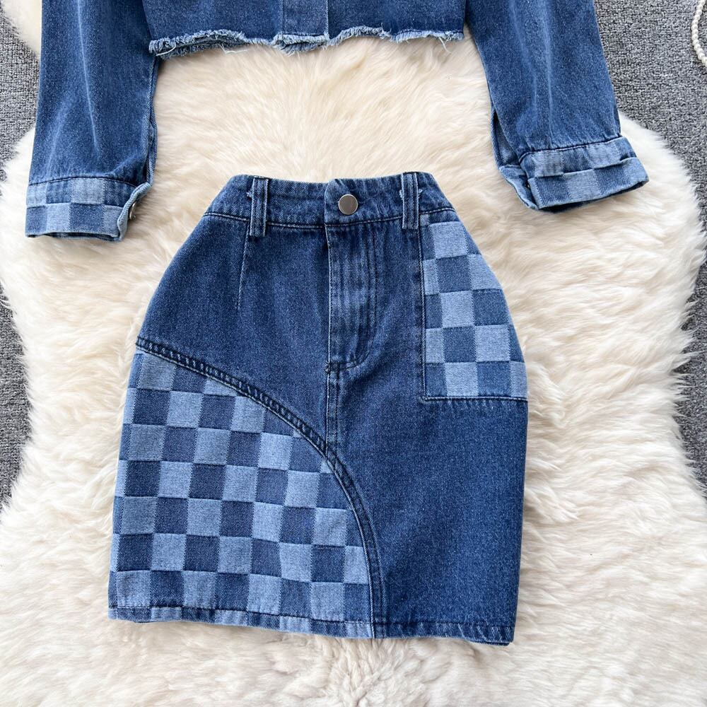 女性秋冬レトロデニムセット長袖シングルブレストカーディガンコート + ウエスト A ラインスカート 2 点セット ロング オータム 秋物 ウィンター 冬物 Aライン Abe95018788544