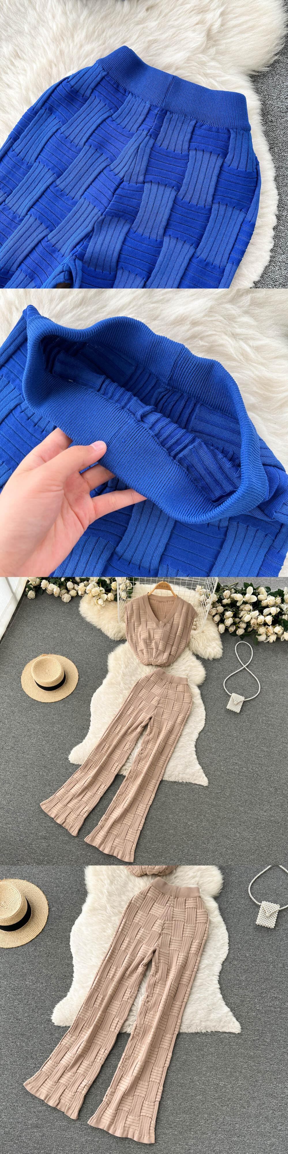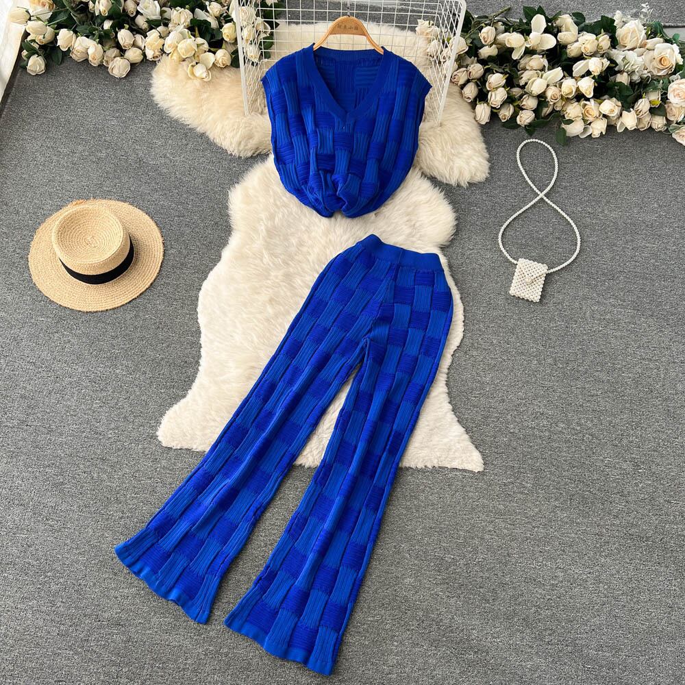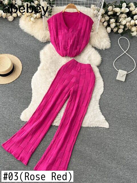 2ピースセーターセット女性トラックスーツノースリーブセーター+ルーズズボンシックなプルオーバーセーター+ニットキャロットパンツセット Abe89681543574