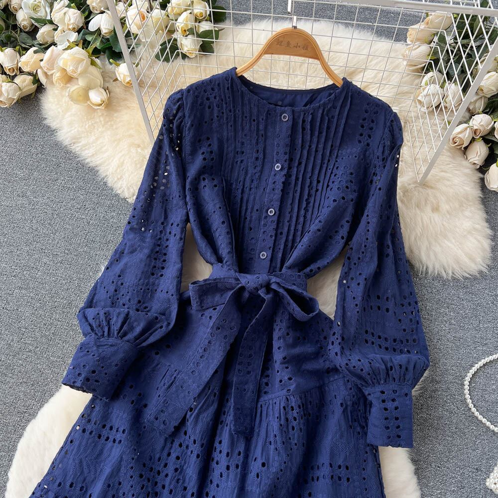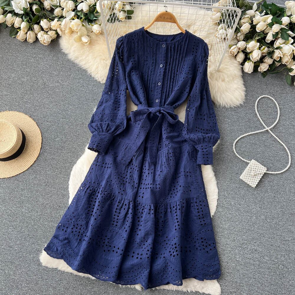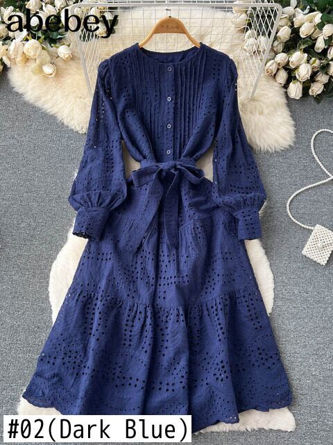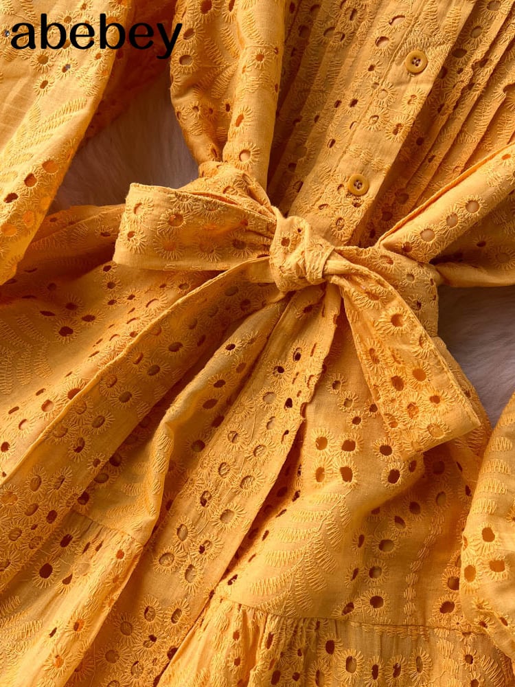 パープル/イエロー 2022 秋レース刺繍ドレス女性ランタン長袖ドレスパーティービーチマキシロングドレス オータム 秋物 Abe83994948180