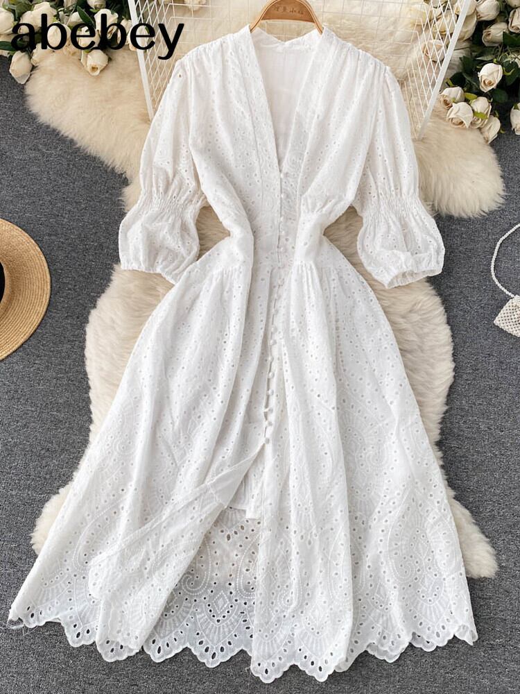 2022 ホワイトレースサマードレス服ドレス女性マキシロングビーチサンドレスローブ 夏物 Abe57786469356