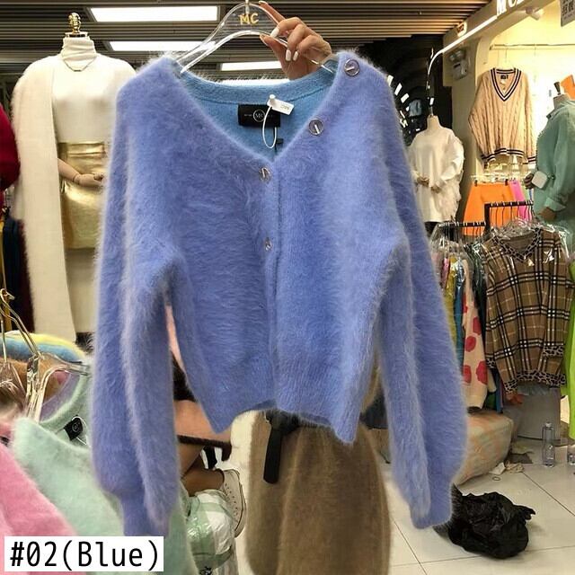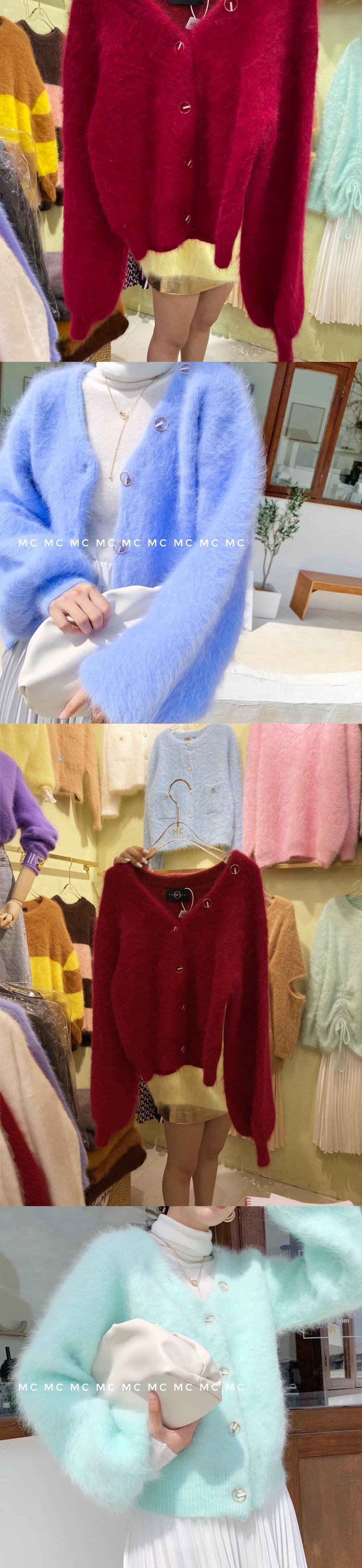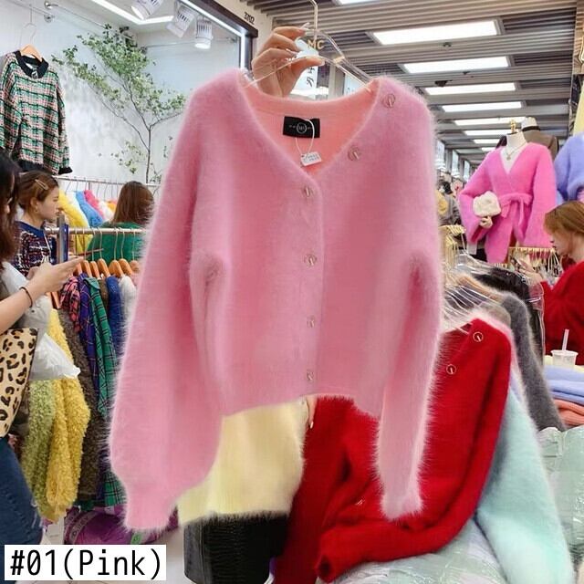 キャンディカラーミンクカシミヤピンクカーディガン秋冬厚手ソフトシングルブレストニットルースセーターコート オータム 秋物 ウィンター 冬物 Abe38295184672