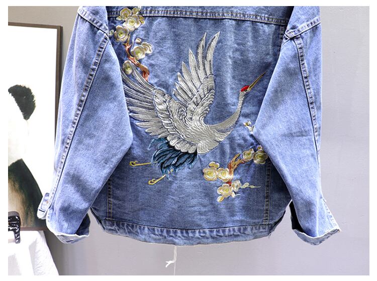 2022 春ルーズフィットデニムジャケットハンサムボーイフレンド風ヘビー刺繍小さなクレーンができる黒のジャケットの女性のコート ブラック スプリング 春物 Abe15145112817