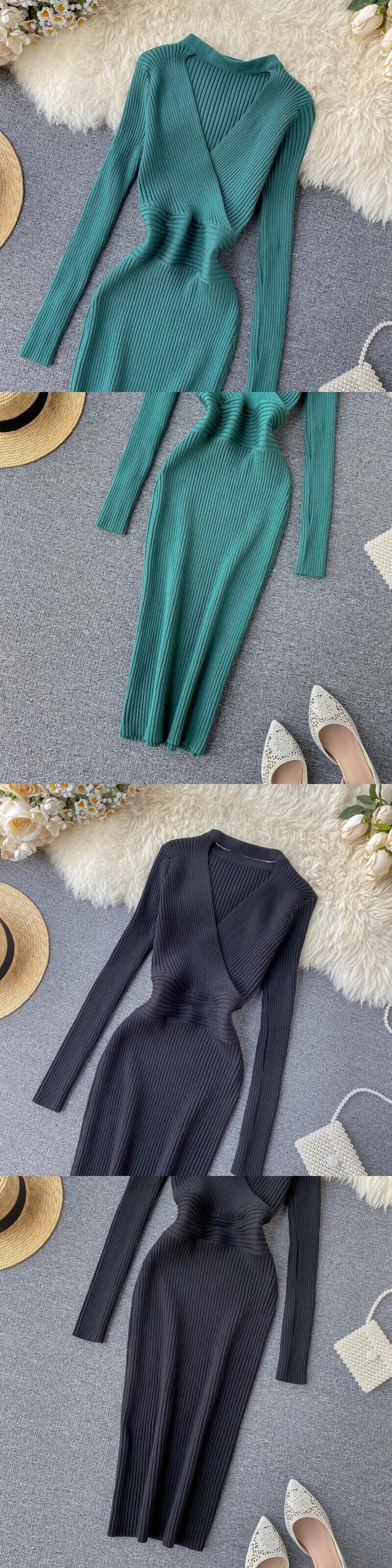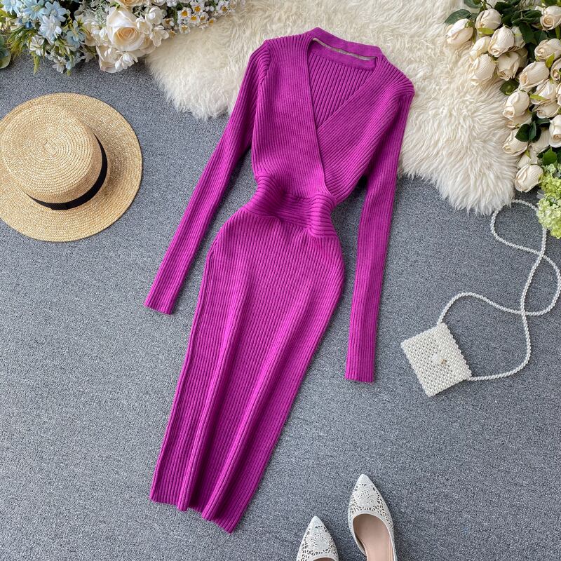 スリム 2022 ニットホルターネックドレスセクシーな中空アウトニットセーターミディドレスボディコンパーティー長袖冬の女性のペンシルドレス ロング ウィンター 冬物 Abe55779267483