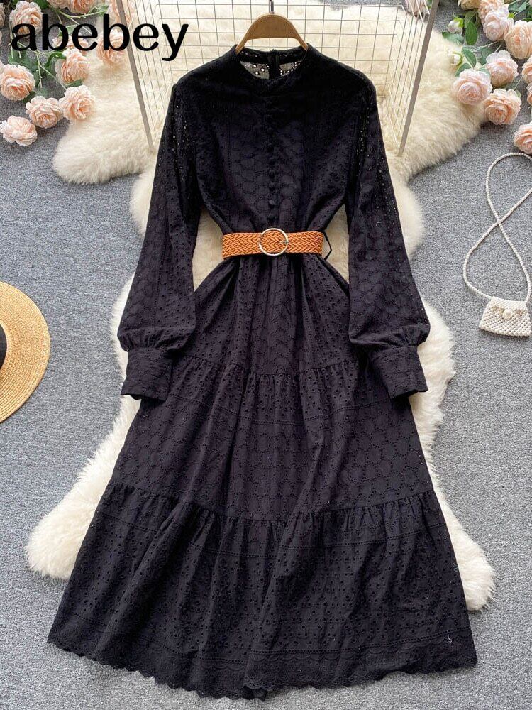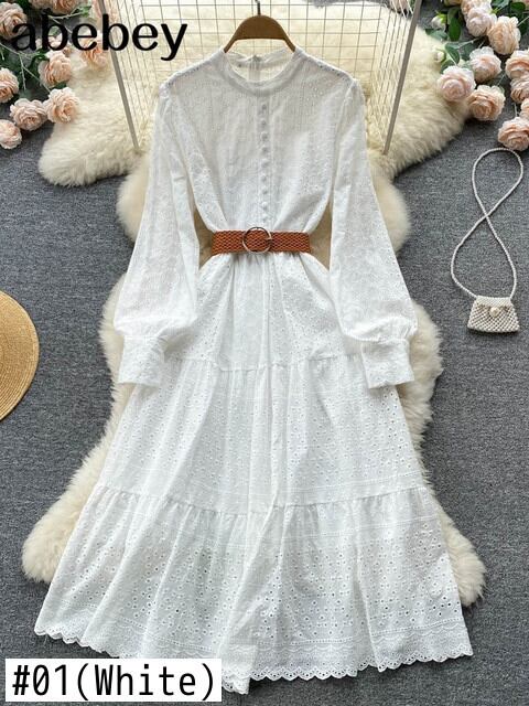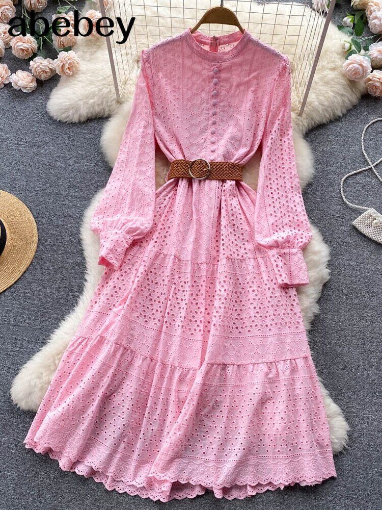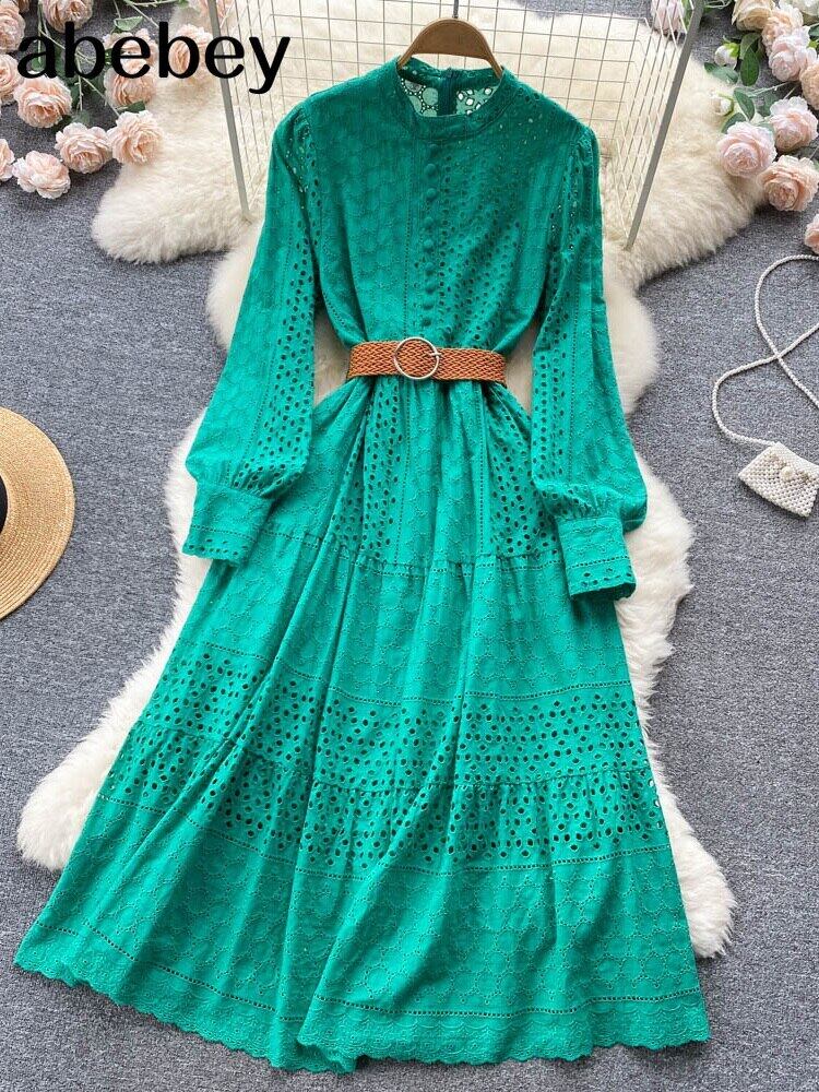 2022 秋ホワイト/グリーン/ピンクレース刺繍ドレス女性長袖ドレスパーティービーチマキシロングドレス オータム 秋物 Abe63457481597
