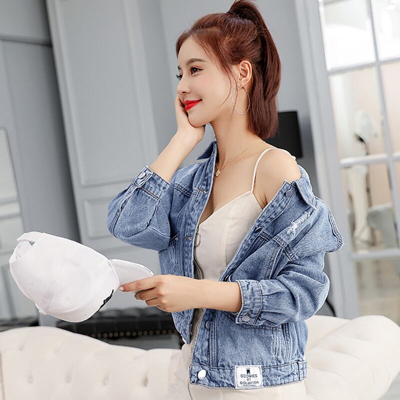 ショートデニムジャケット女性破れたジーンズオーバーコートジーンズジャケットターンダウン襟スリムジーンズコート女性 Abe58268523670