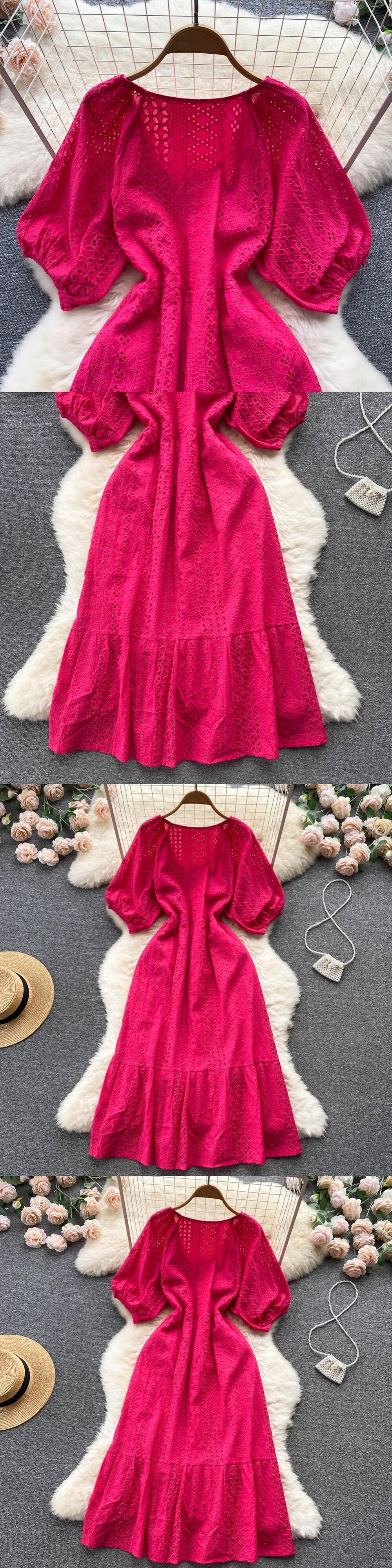 2022 夏ホワイト/グリーン/ピンクレース刺繍ドレス女性パフスリーブドレスパーティービーチマキシロングドレス サマー 夏物 Abe44650006223