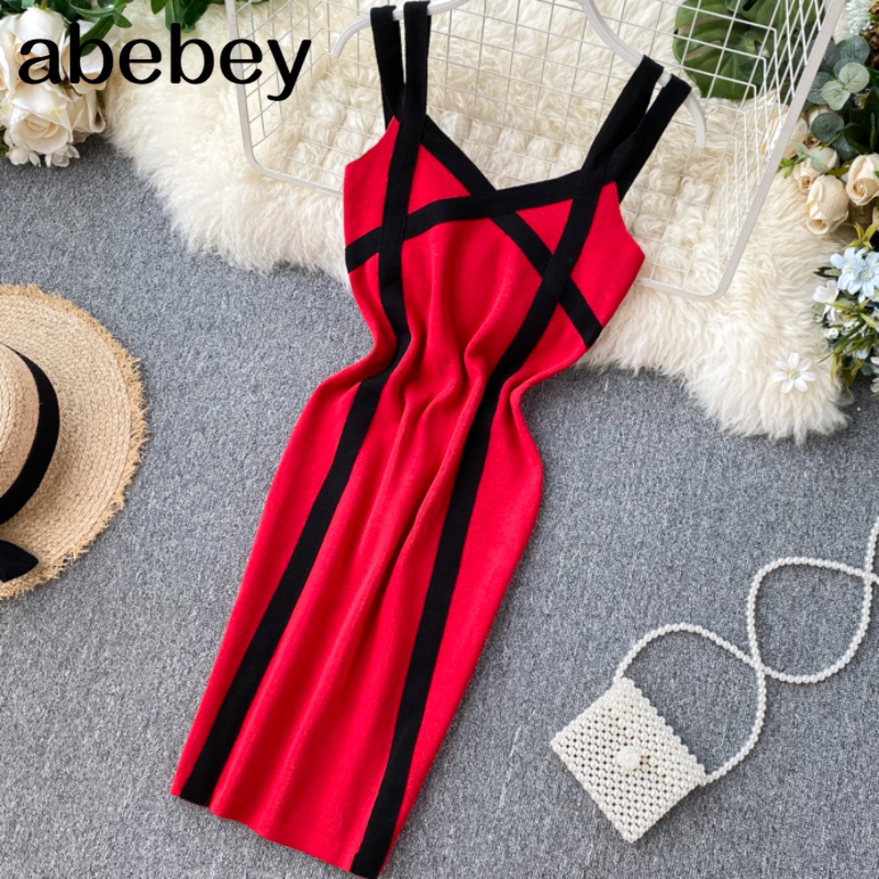 ボタンパッチワークスリム V ネックセクシーな夏ニットミニショートボディコンドレススパゲッティストラップ女性ナイトクラブパーティー Vestidos サマー 夏物 Vネック Abe87793754676