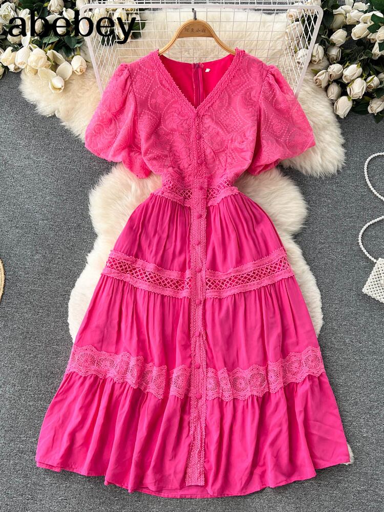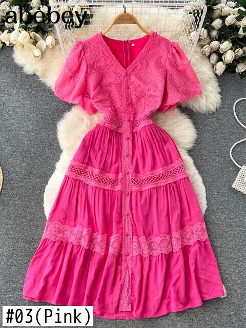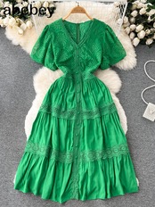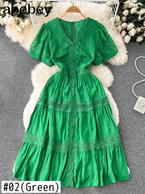 2022 ホワイト/グリーン/レッドサマーレース刺繍ドレス女性半袖ドレスパーティービーチマキシロングドレス ショート ハーフスリーブ 夏物 Abe79190087902