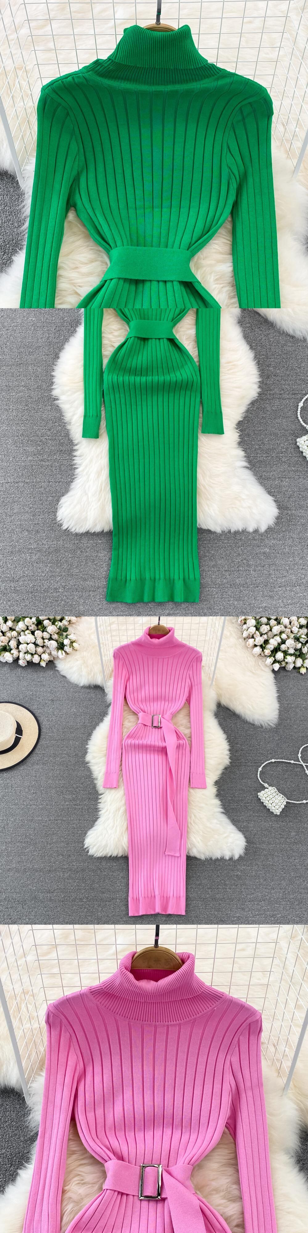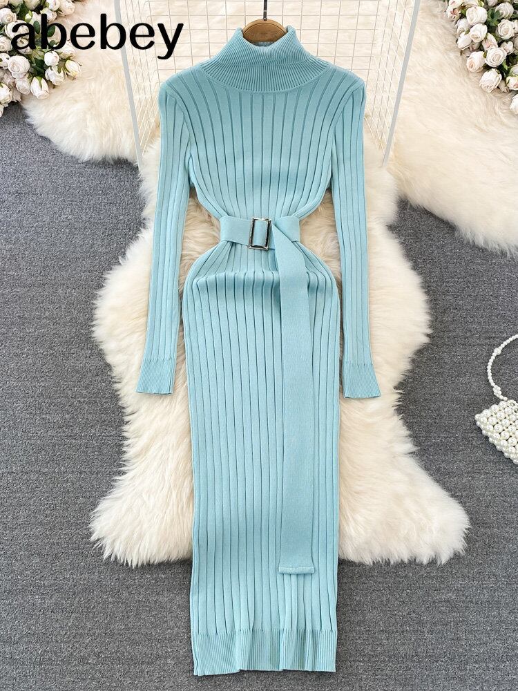 冬の黒のタートルネックのセクシーな女性ドレス秋の長袖スキニーマキシ Boydcon セーター豪華な膝丈パーティークラブ ロング ブラック オータム 秋物 ウィンター 冬物 Abe95820416788