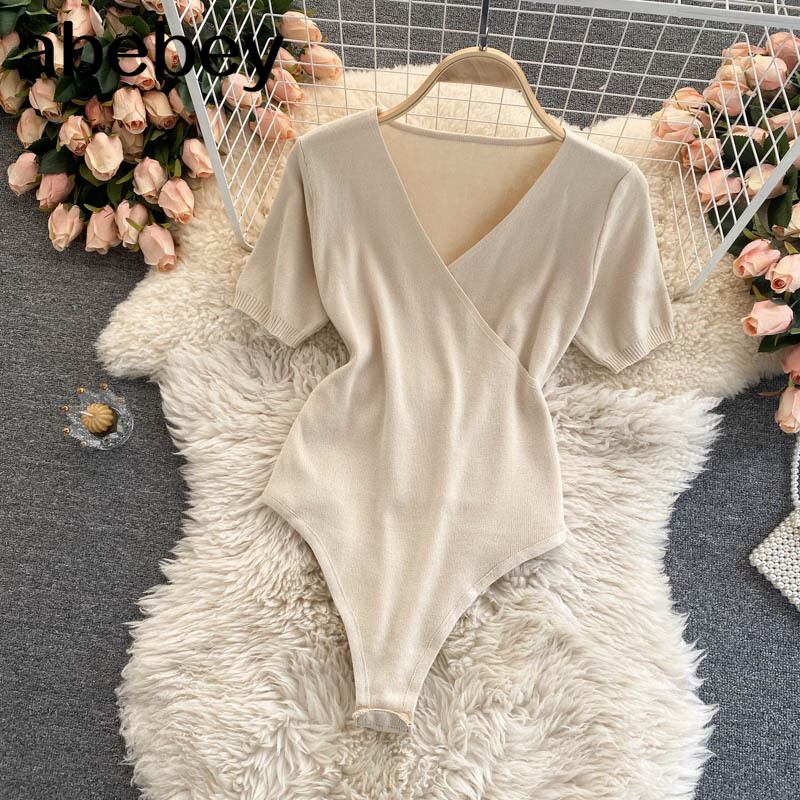 ソリッド V ネックフィットネスロンパース女性ボディスーツ半袖レギュラージャンプスーツストリート衣装 2022 スタイル ショート ハーフスリーブ Vネック ソリッドカラー Abe74092596712