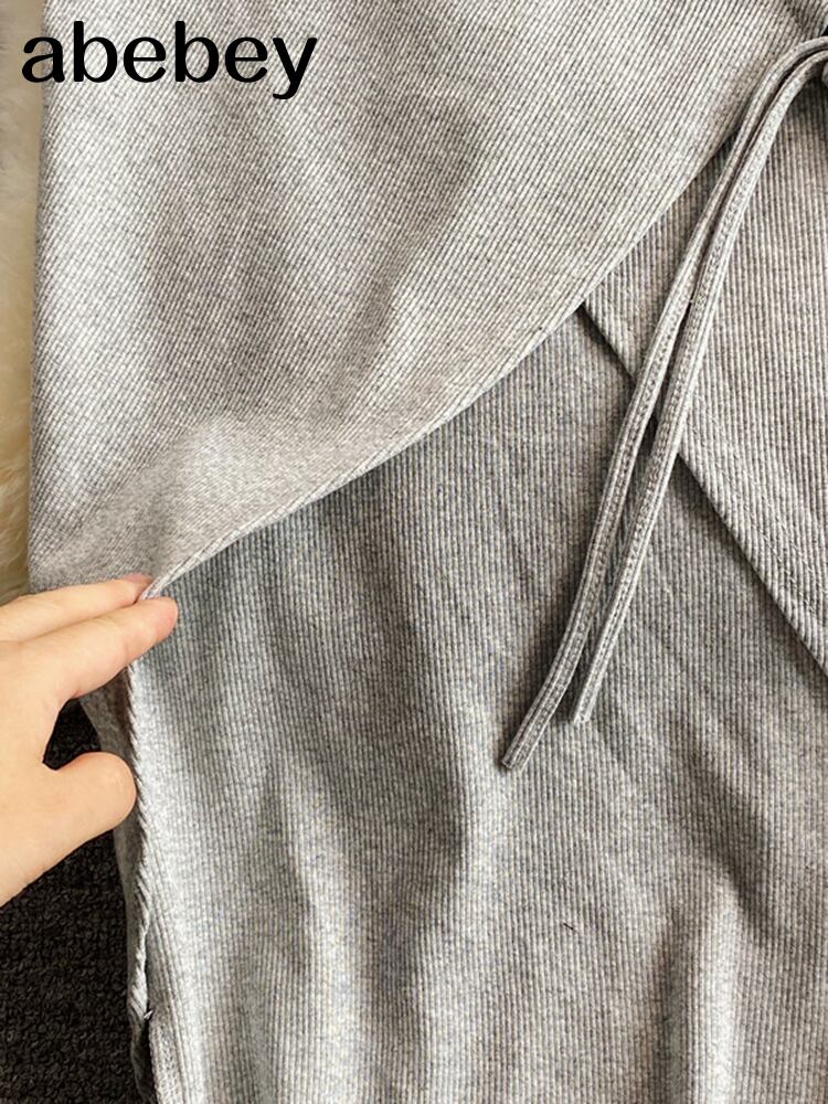 2022 女性ニットスカートセクシーな巾着シャーリング不規則なミディスカートストリートソリッド弾性ウエストパーティークラブスカート エラスティック 伸縮 ソリッドカラー Abe12839495248