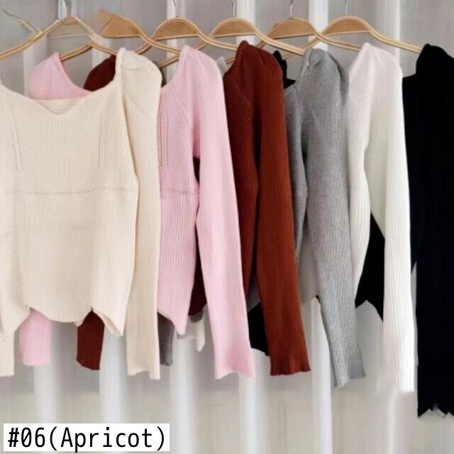 スクエアカラースリムニットトップス女性 2022 秋の気質プルオーバーベーシックセーター長袖ストレッチクロップドトップス ロング オータム 秋物 スクウェア Abe98188213990